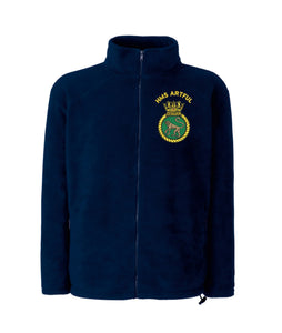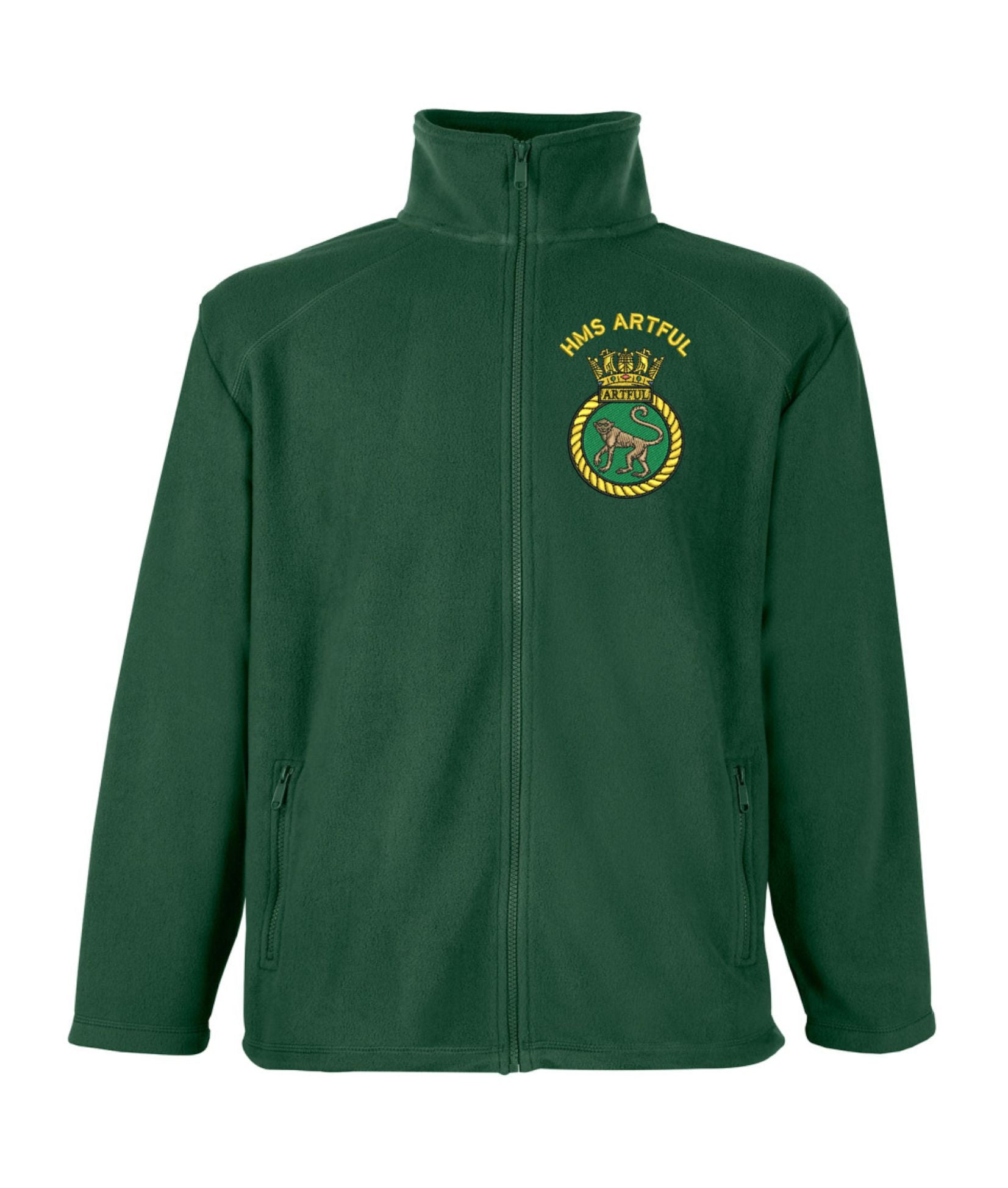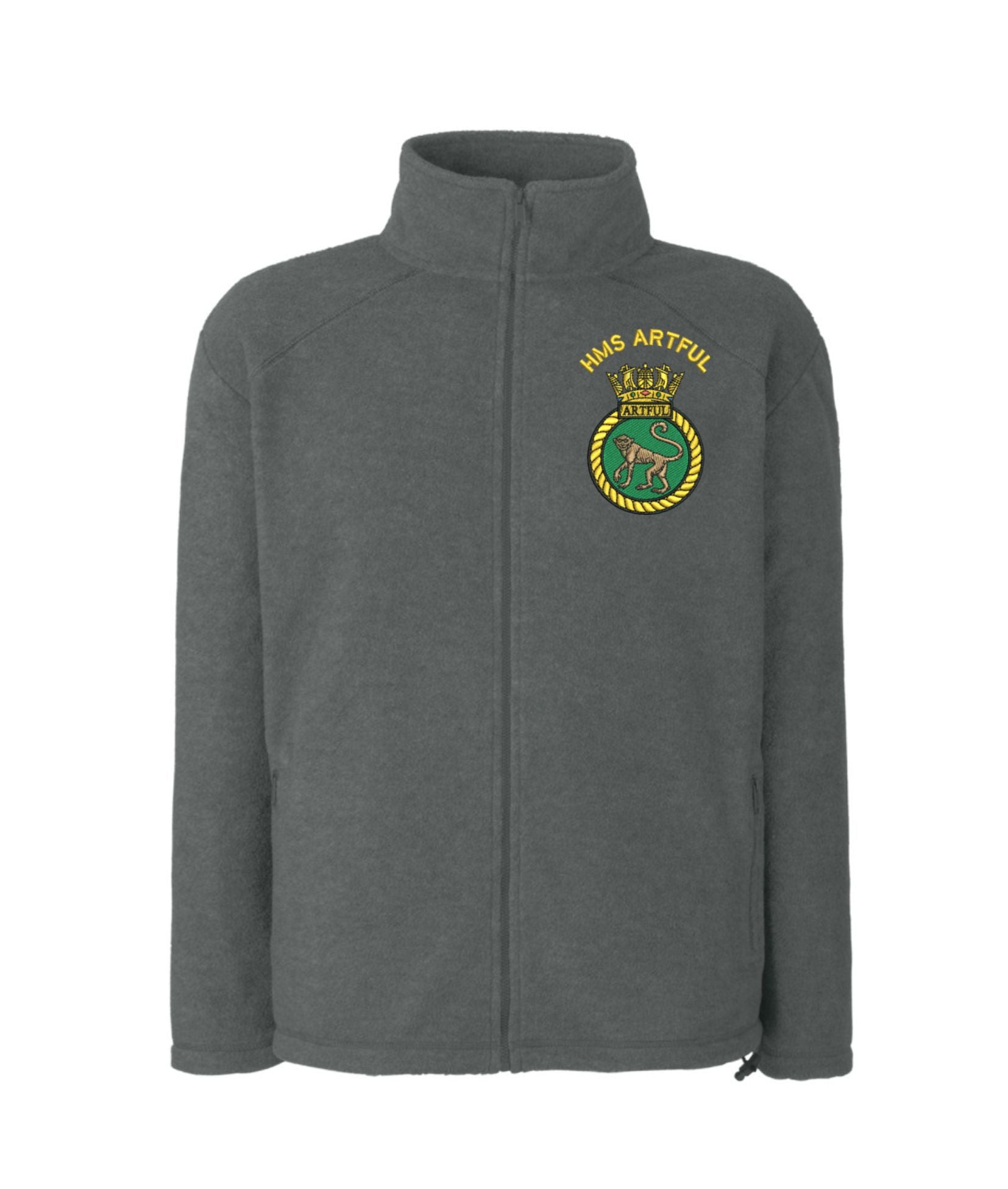 HMS Artful Fleece clothing made all clothing . The crest is then embroidered onto the Fleece after you have selected the Size, Colour and Qty.  Please allow up to three working days for your order to be processed as the item has to be embroidered first.  Large orders of 15 or more may take longer.