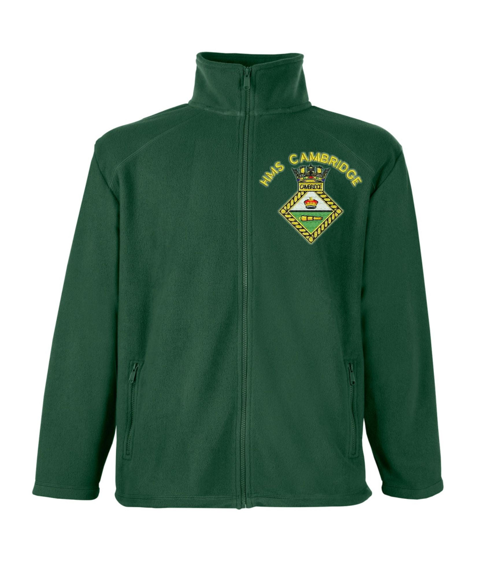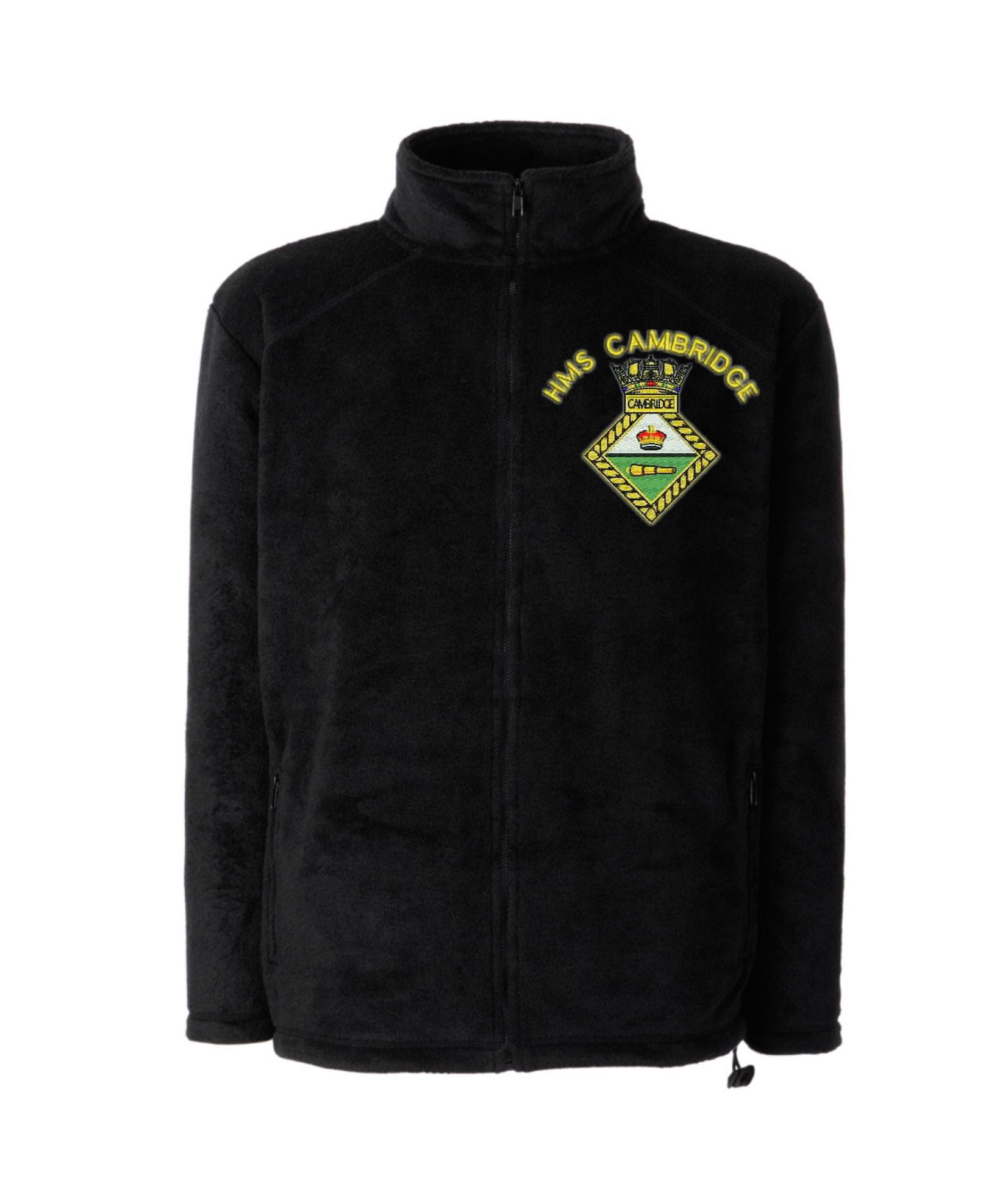 HMS Cambridge Fleece clothing made all clothing . The crest is then embroidered onto the Fleece eafter you have selected the Size, Colour and Qty. Please allow up to three working days for your order to be processed as the item has to be embroidered first. Large orders of 15 or more may take longer.