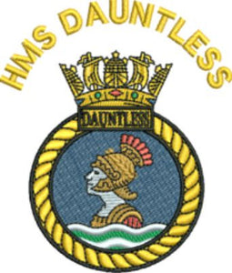 HMS Dauntless Fleece clothing made all clothing . The crest is then embroidered onto the Fleece after you have selected the Size, Colour and Qty.  Please allow up to three working days for your order to be processed as the item has to be embroidered first.  Large orders of 15 or more may take longer.