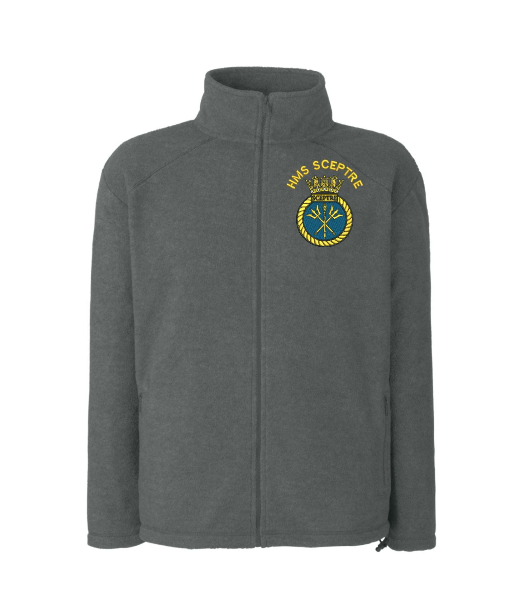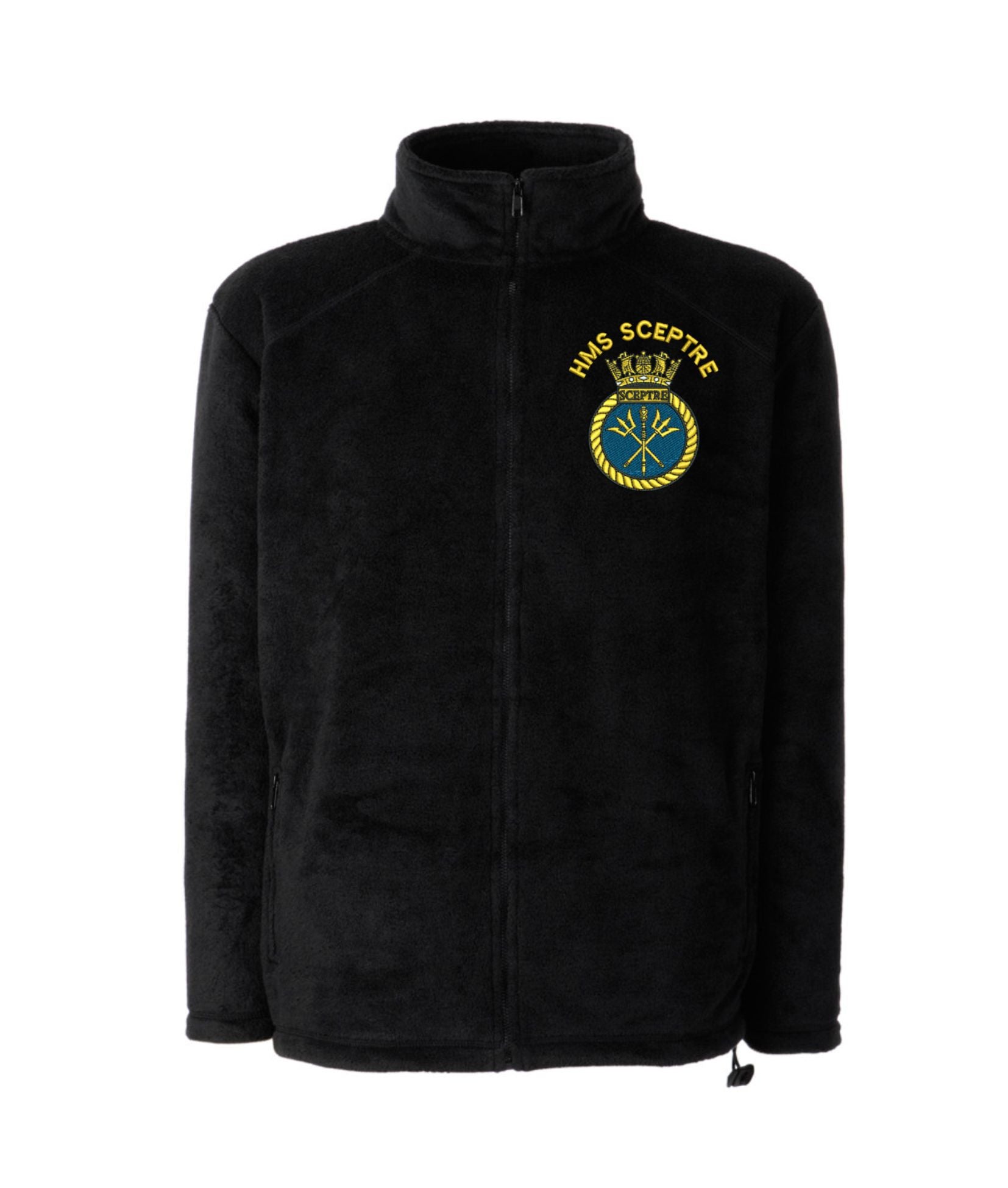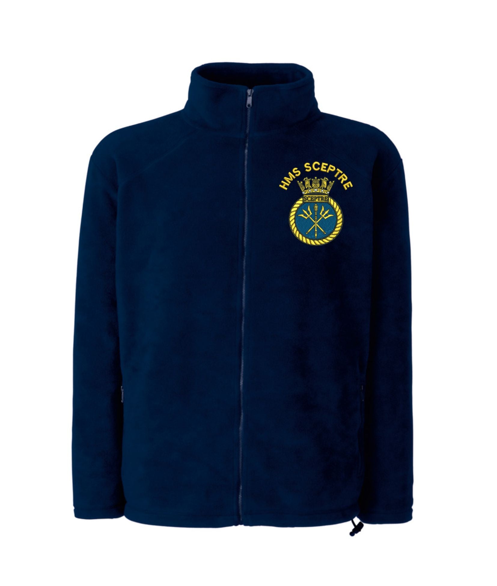 HMS Sceptre Fleece clothing made all clothing . The crest is then embroidered onto the Fleece after you have selected the Size, Colour and Qty. Please allow up to three working days for your order to be processed as the item has to be embroidered first. Large orders of 15 or more may take longer.