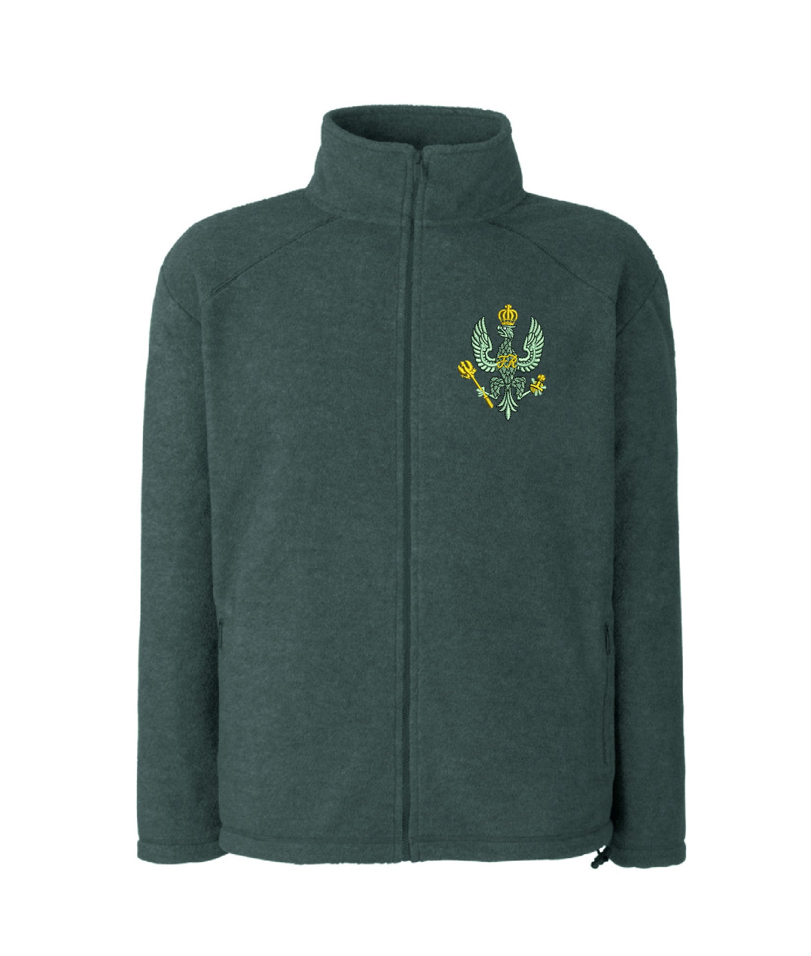 Kings Royal Hussars Fleece is made by Fruit of the Loom. The logo is then embroidered onto the Fleece after you have selected the Size, Colour and Qty.  Please allow up to three working days for your order to be processed as the item has to be embroidered first.  Large orders of 15 or more may take longer.