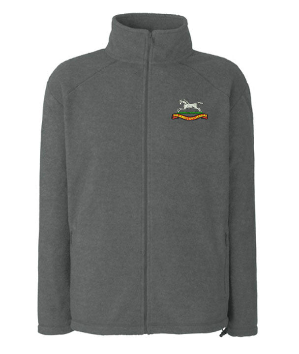 The Queens Own Hussars Men's Premium Fleece is made by Fruit of the Loom. The logo is then embroidered onto the Fleece after you have selected the Size, Colour and Qty.  Please allow up to three working days for your order to be processed as the item has to be embroidered first.  Large orders of 15 or more may take longer.