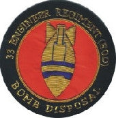 33 Eod Bomb Disposal Blazer Badge with fine quality gold / silver wire All our blazer badges vary in size according to the regiment/design but all are designed to fit onto a standard sized blazer pocket.