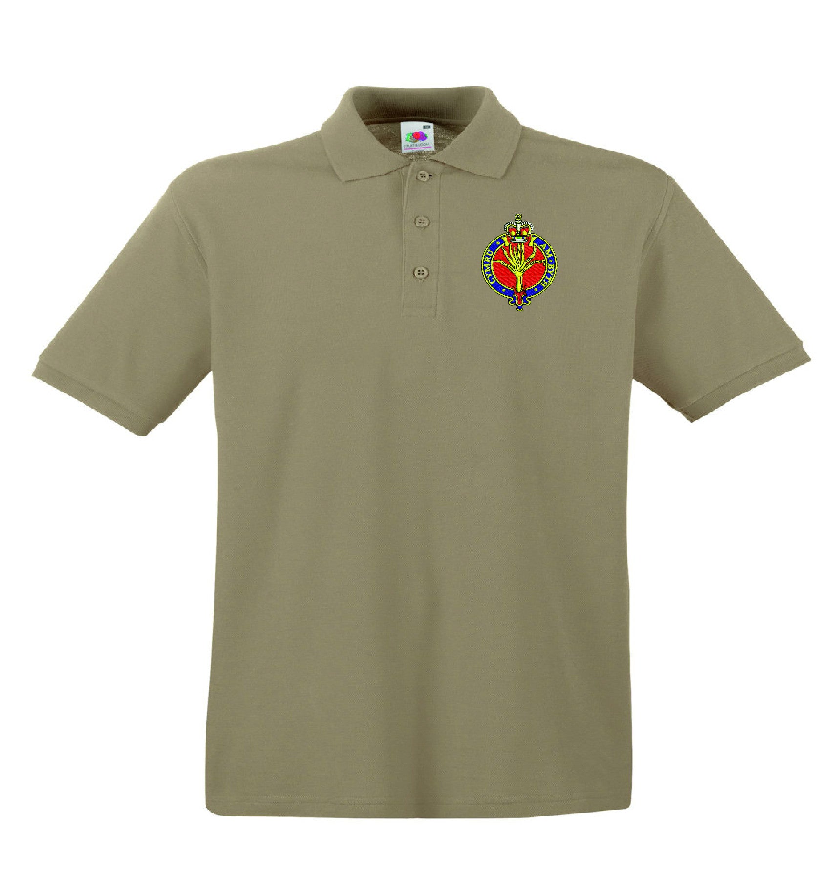Welsh Guards Polo Shirts is made by Fruit of the Loom. The logo is then embroidered onto the polo shirts after you have selected the Size, Colour and Qty. Please allow up to three working days for your order to be processed as the item has to be embroidered first. Large orders of 15 or more may take longer.