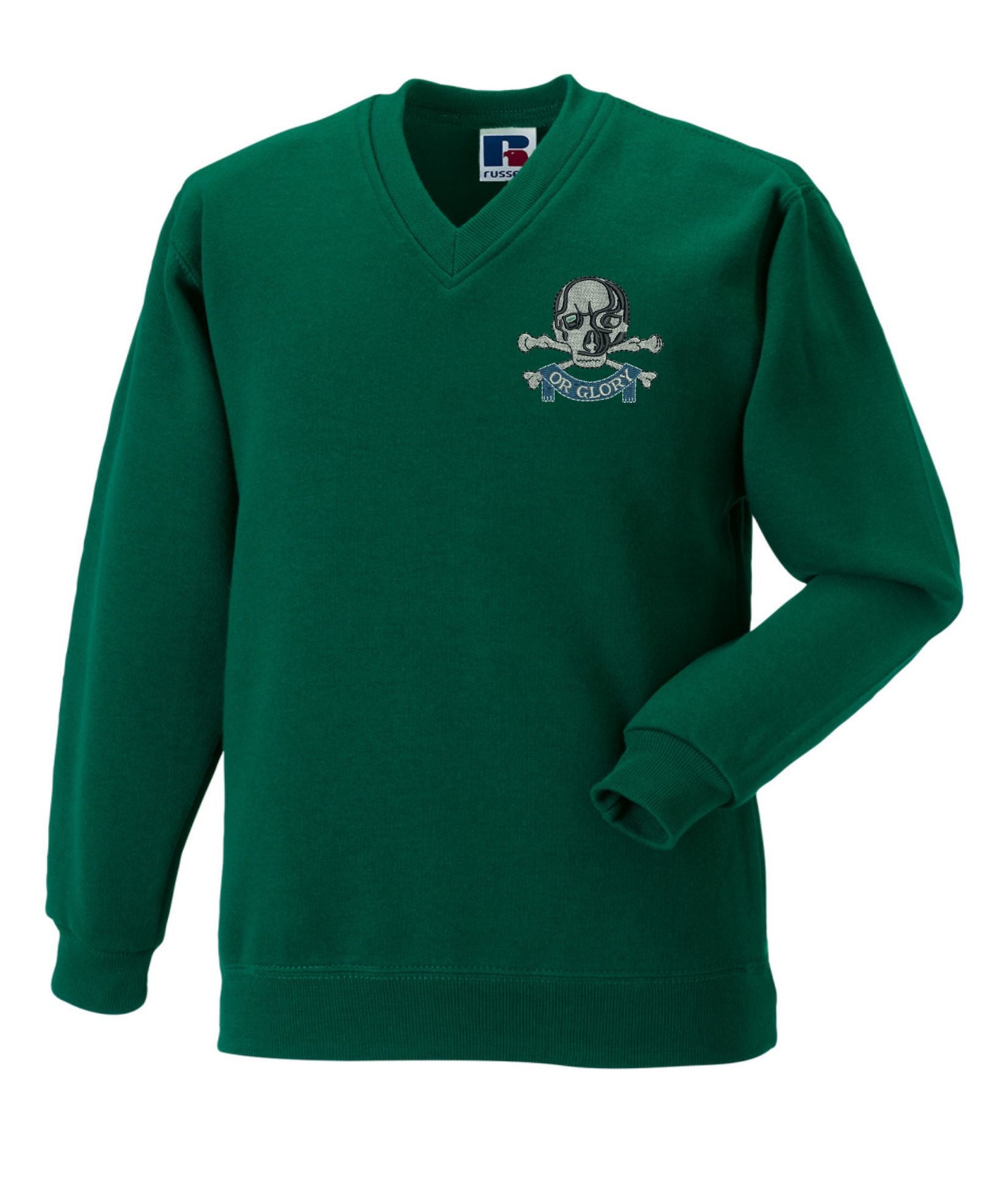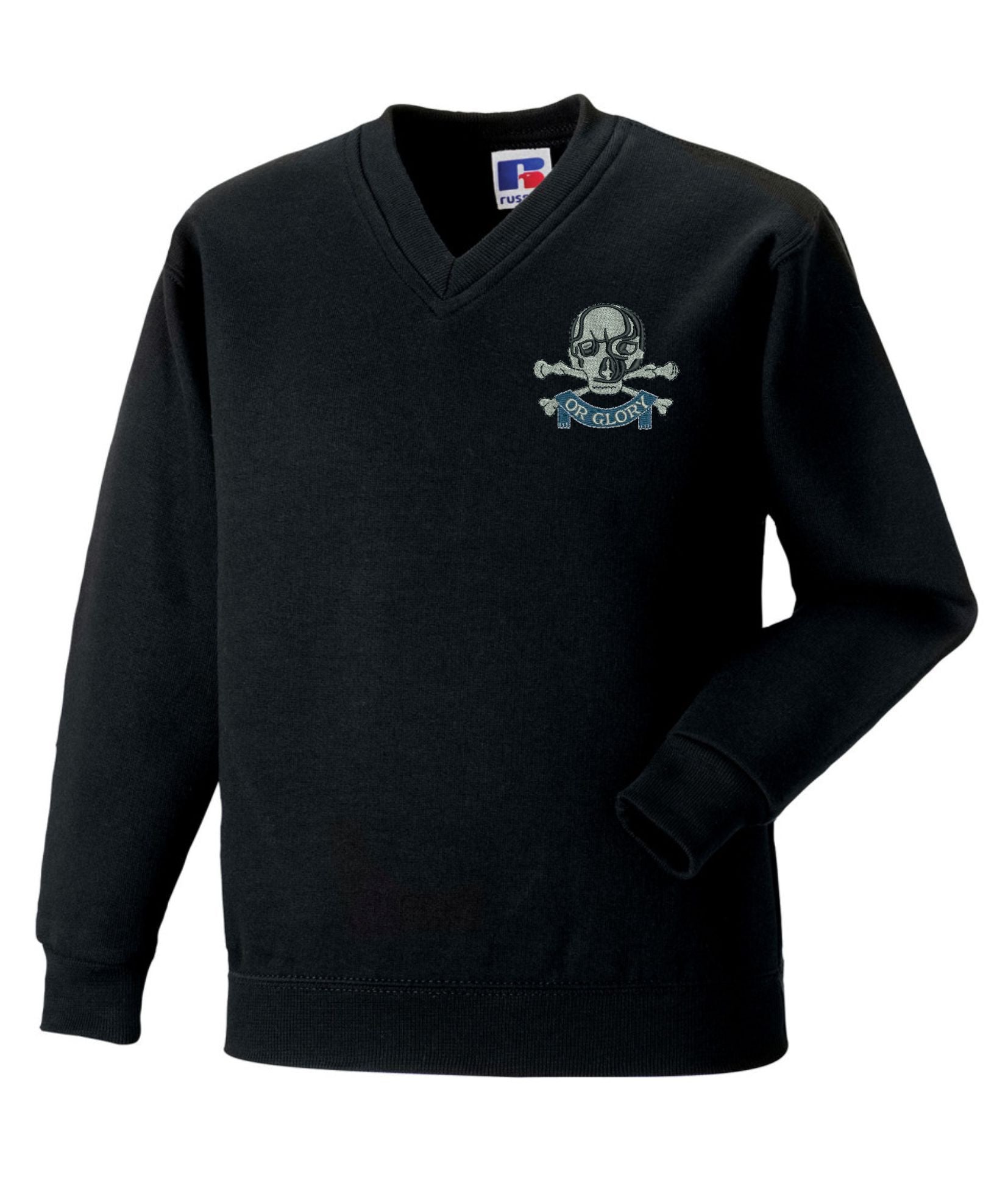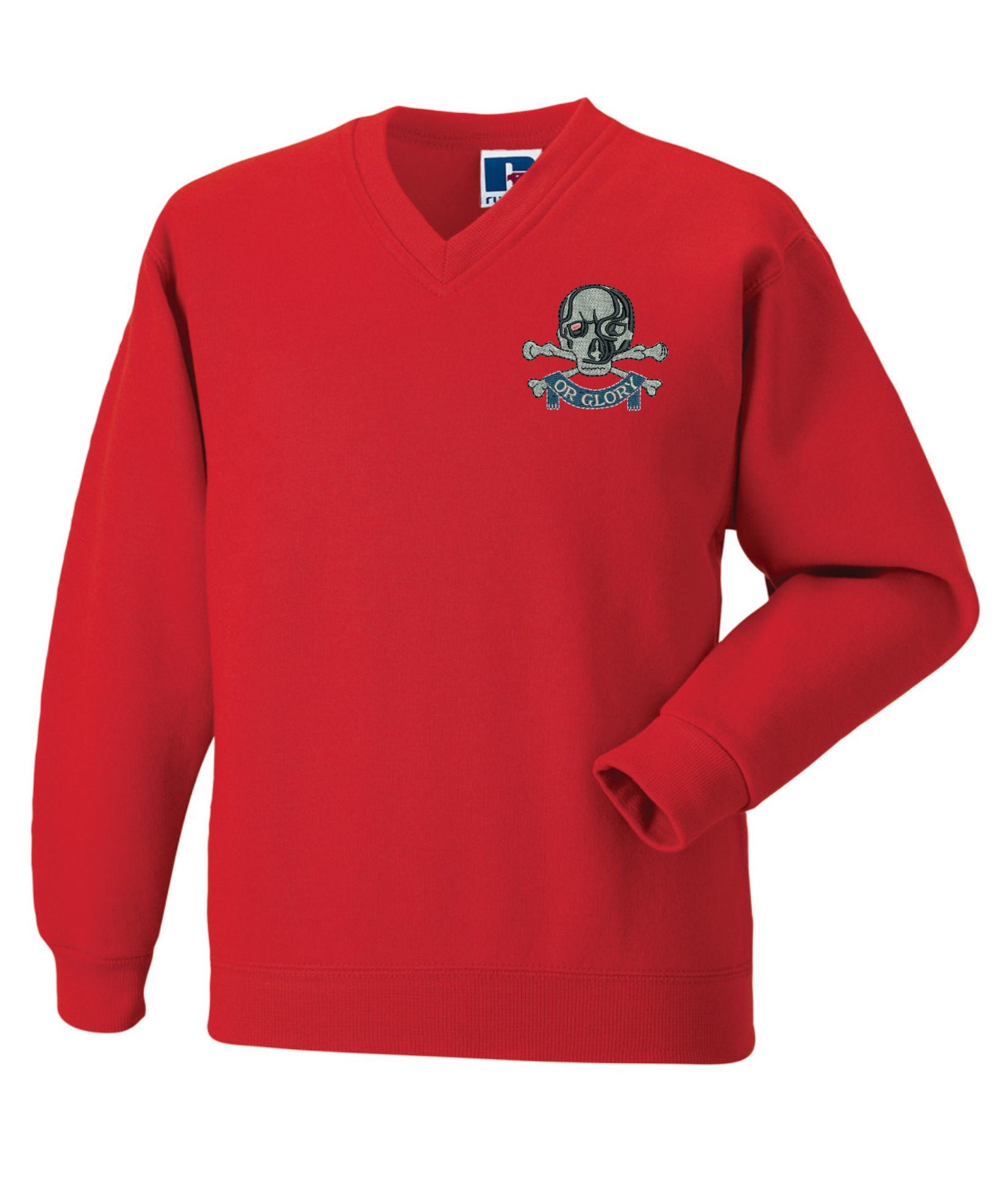 17th/21st Lancers V Neck Sweatshirt is made by russell. The logo is then embroidered onto the embroidered Regimental clothing after you have selected the Size, Colour and Qty. Please allow up to three working days for your order to be processed as the item has to be embroidered first. Large orders of 15 or more may take longe