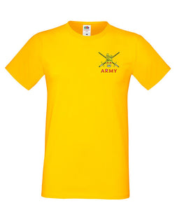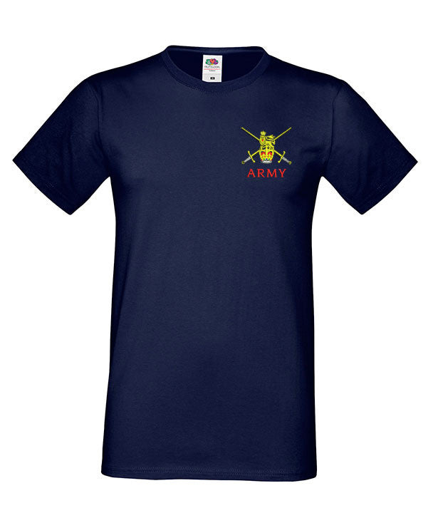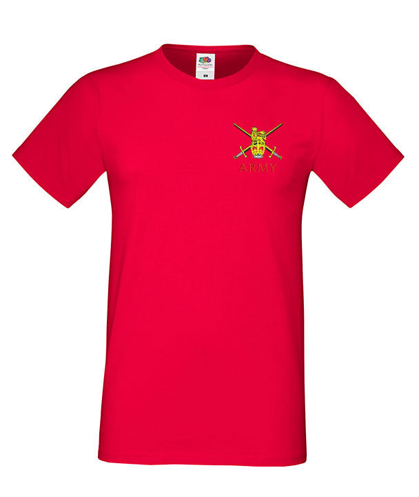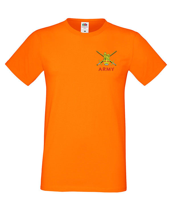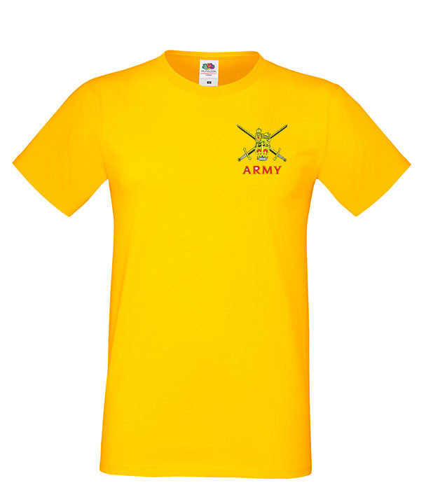 Army MEN’S Super Soft T -Shirt is made by Fruit of the Loom. The logo is them embroidered onto the t-shirt after you have selected the Size, Colour and Qty. Please allow up to three working days for your order to be processed as the item has to be embroidered first. Large orders of 15 or more may take longer.
