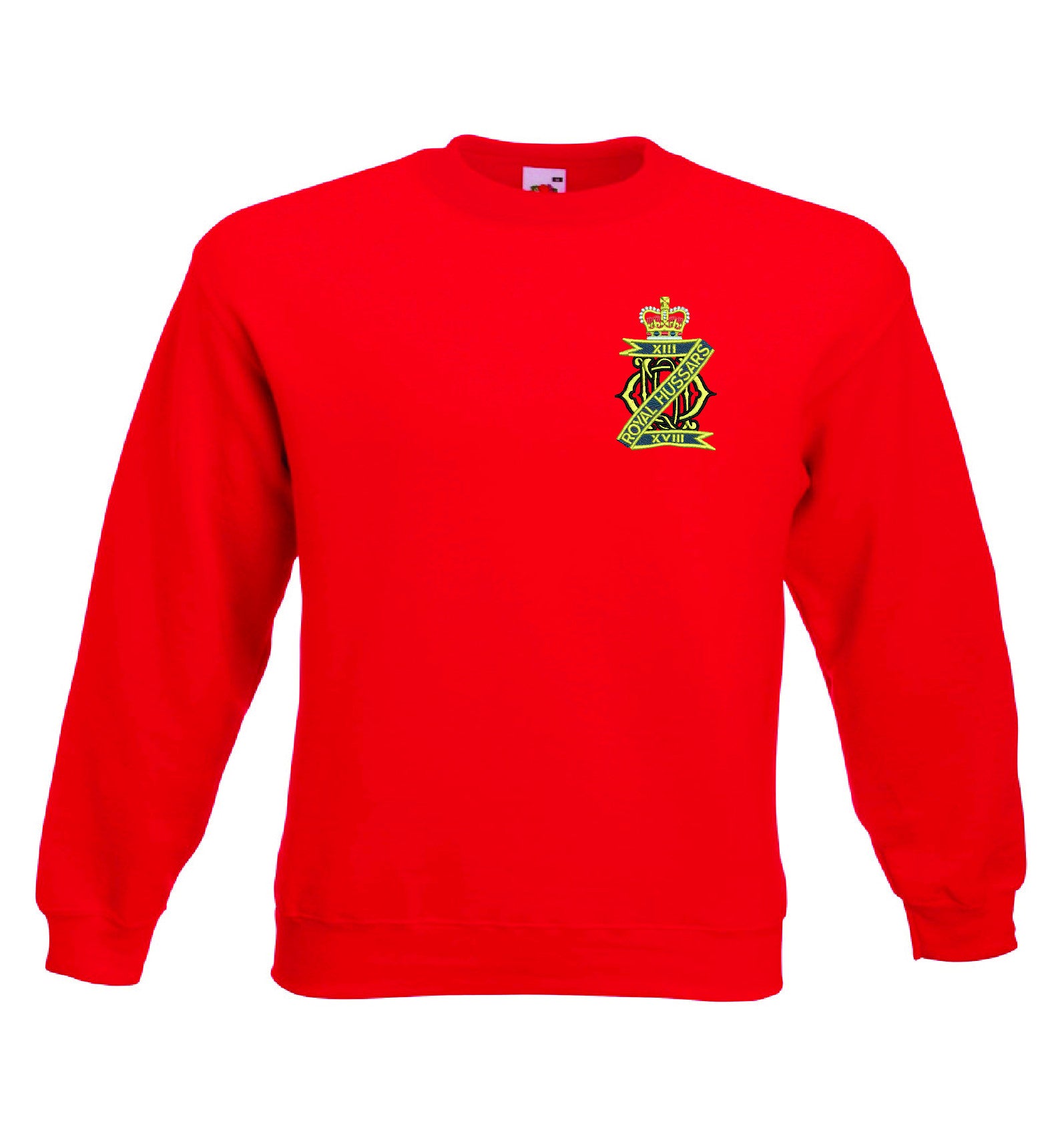 13th/18th Royal Hussars Sweatshirts is made by Fruit of the Loom. The logo is then embroidered onto the sweatshirts after you have selected the Size, Colour and Qty.  Please allow up to three working days for your order to be processed as the item has to be embroidered first.  Large orders of 15 or more may take longer.