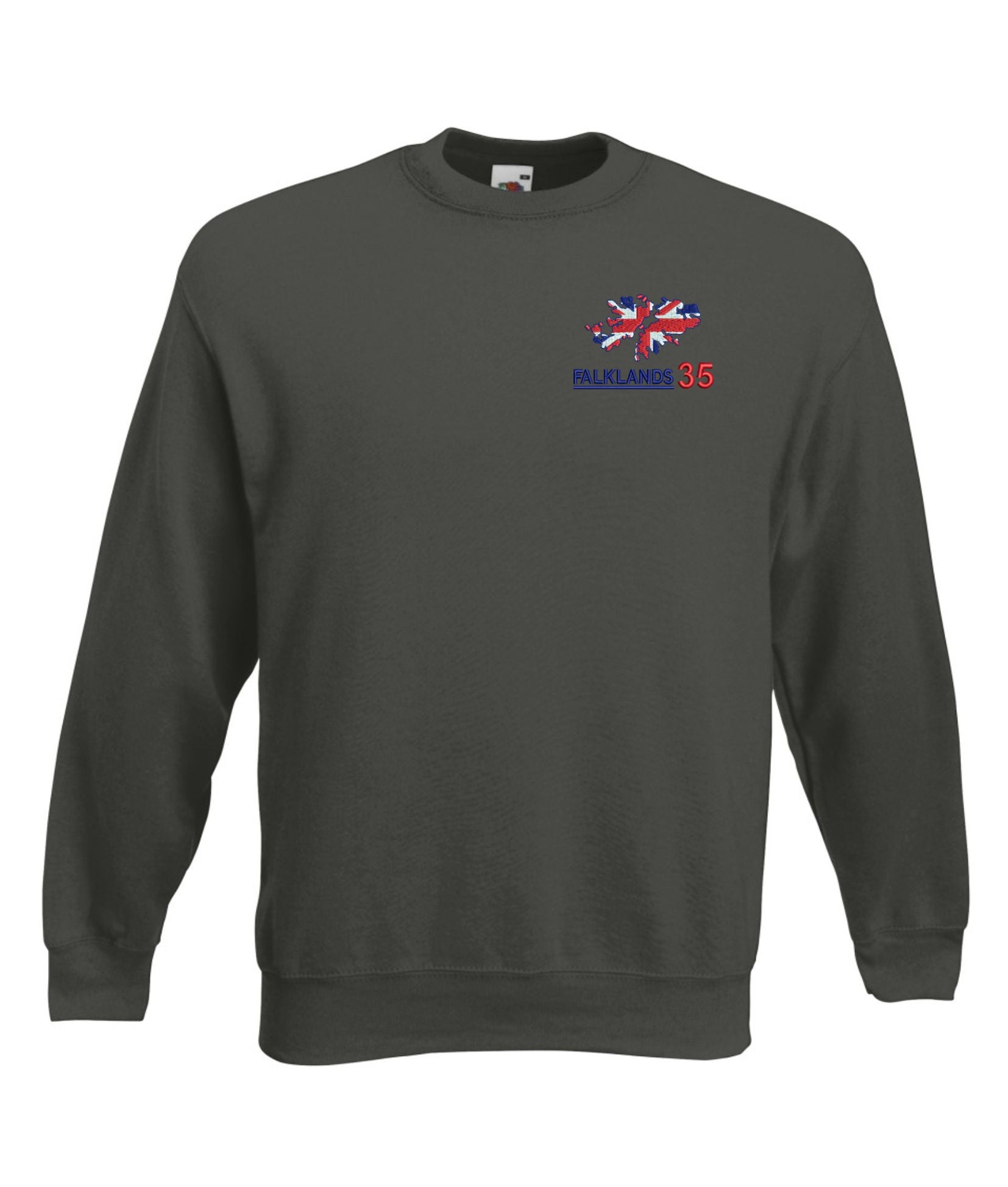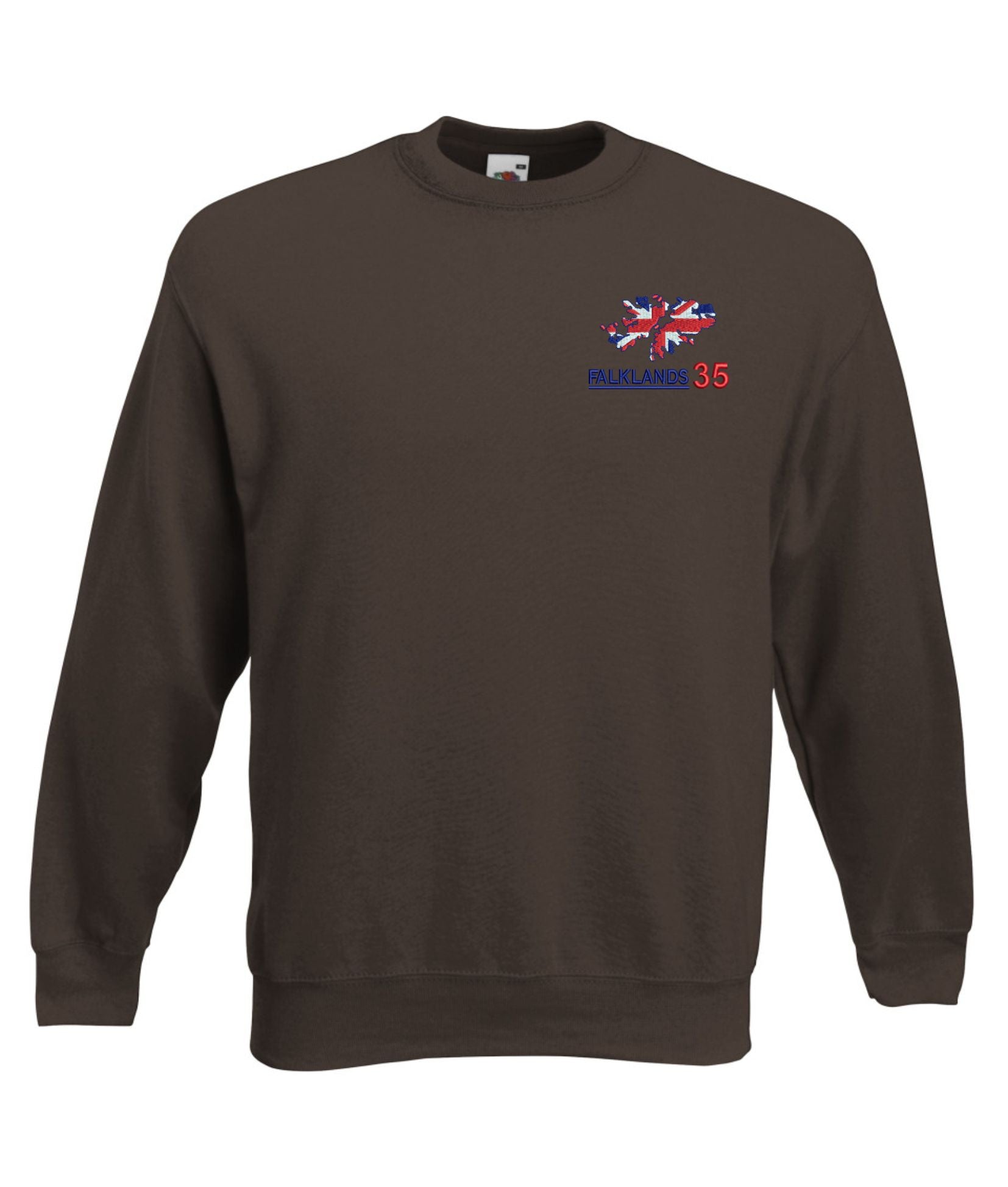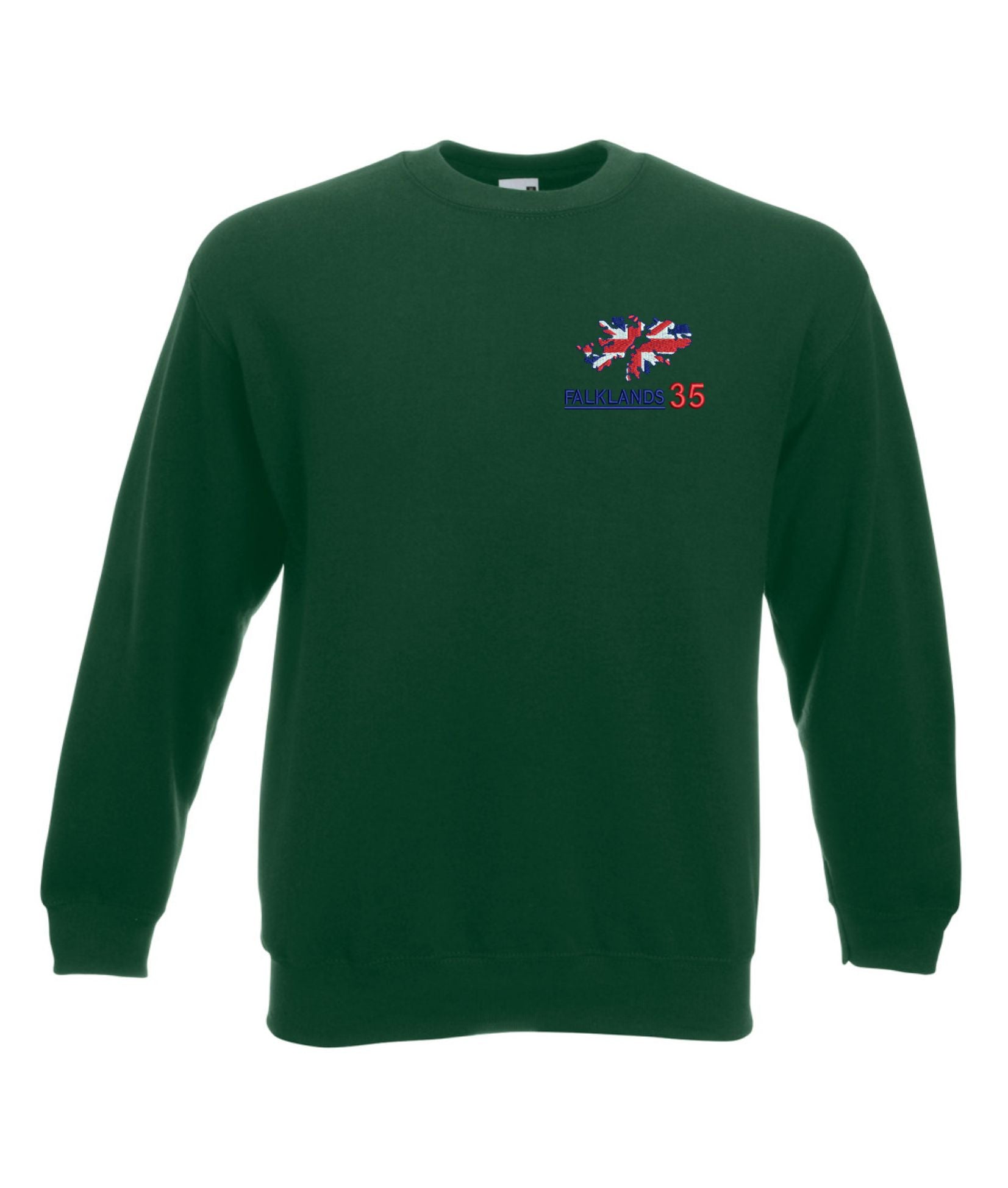 Falklands 35th Anniversary Sweatshirts is made by Fruit of the Loom. The logo is then embroidered onto the sweatshirts after you have selected the Size, Colour and Qty. Please allow up to three working days for your order to be processed as the item has to be embroidered first. Large orders of 15 or more may take longer .