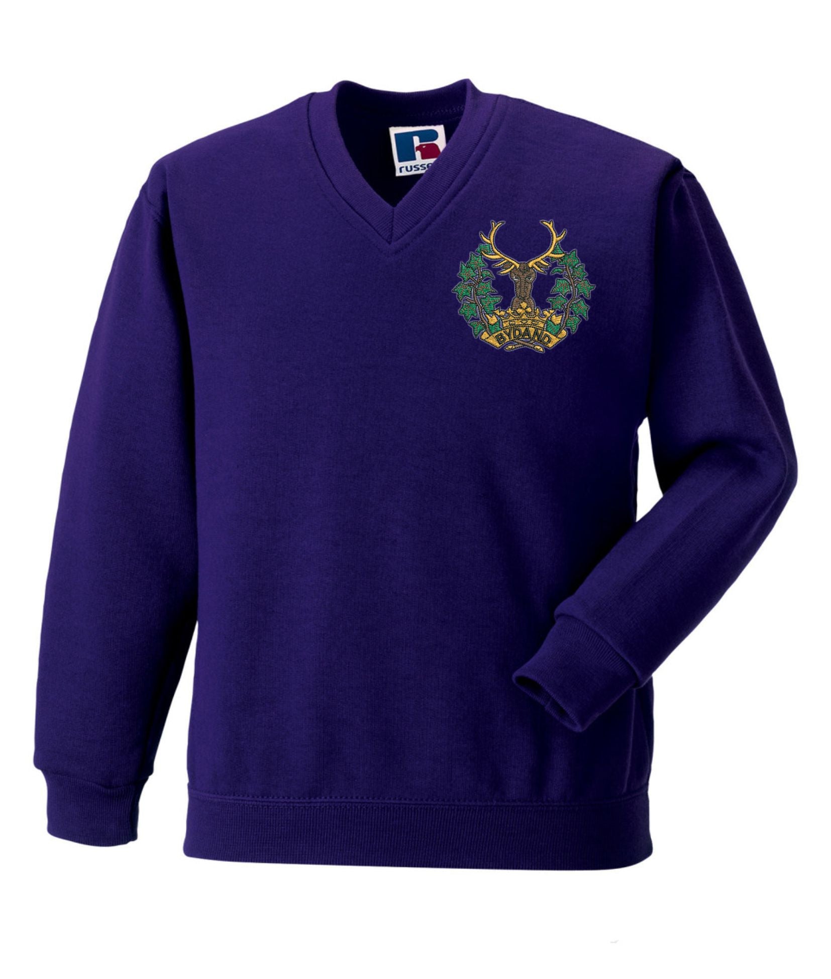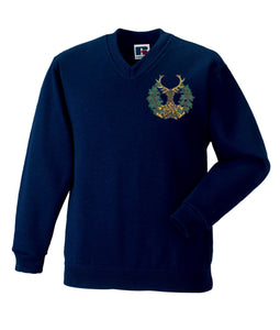 Gordon Highlanders V Neck Sweatshirt is made by russell. The logo is then embroidered onto the embroidered Regimental clothing after you have selected the Size, Colour and Qty. Please allow up to three working days for your order to be processed as the item has to be embroidered first. Large orders of 15 or more may take longe