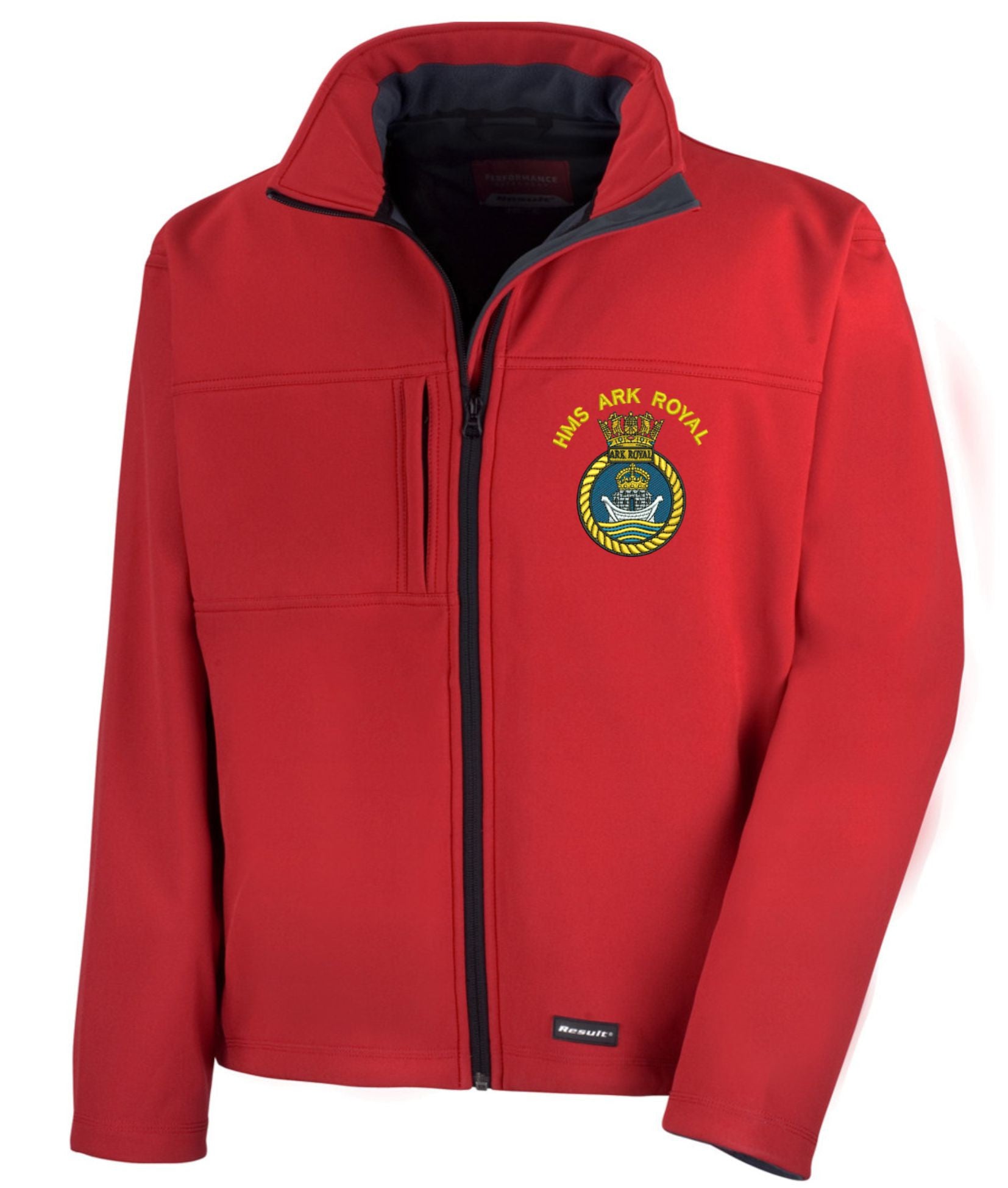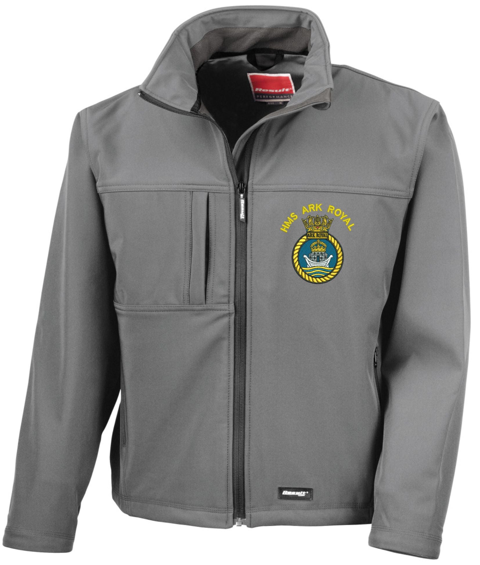 HMS Ark Royal Softshell clothing made all clothing . The crest is then embroidered onto the softshell jacket after you have selected the Size, Colour and Qty. Please allow up to three working days for your order to be processed as the item has to be embroidered first. Large orders of 15 or more may take longer.