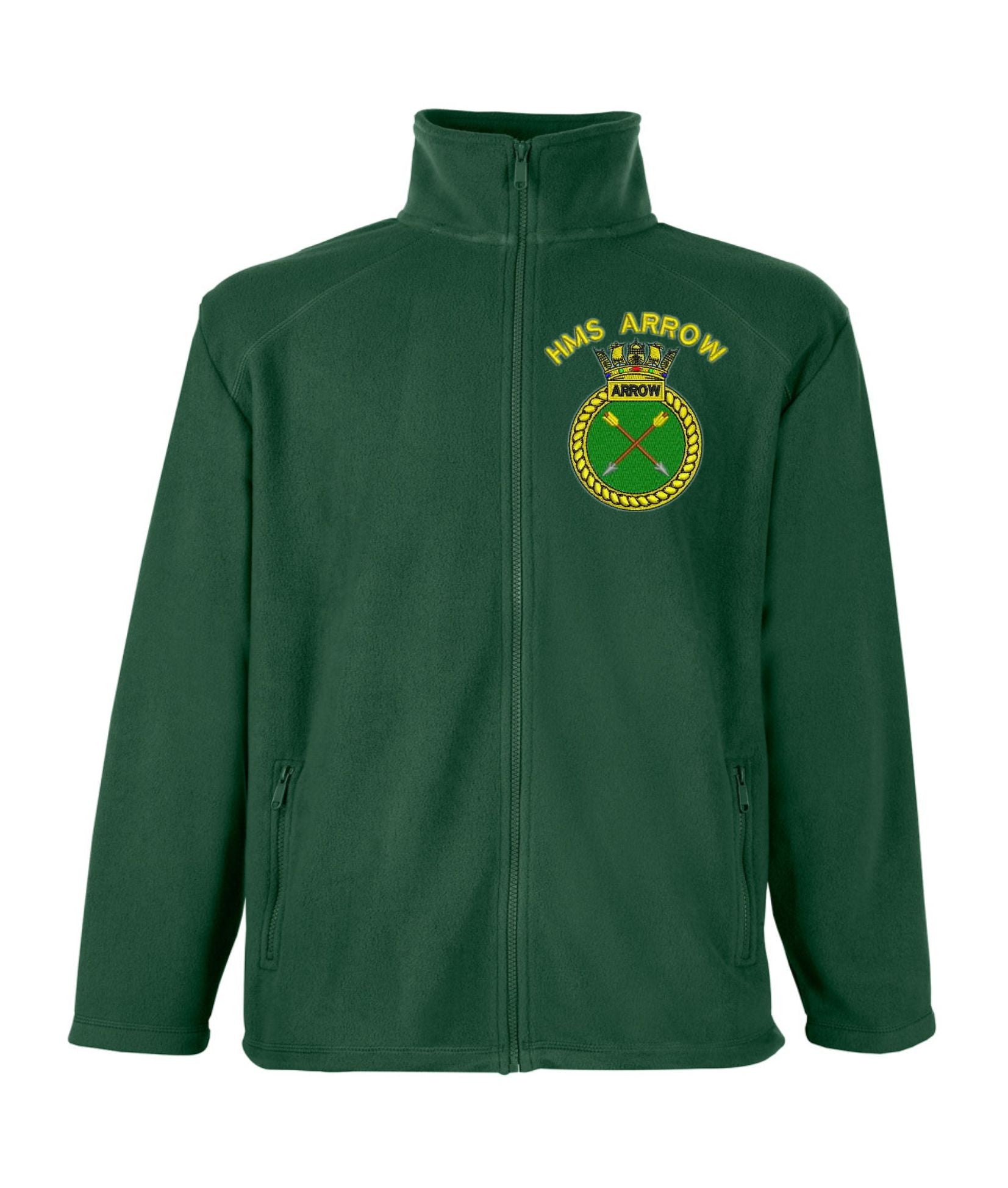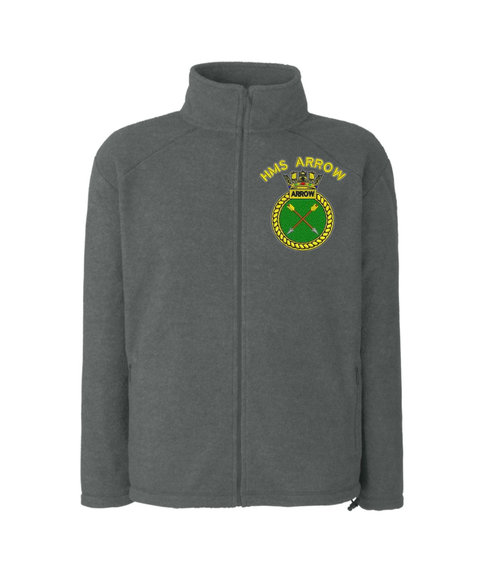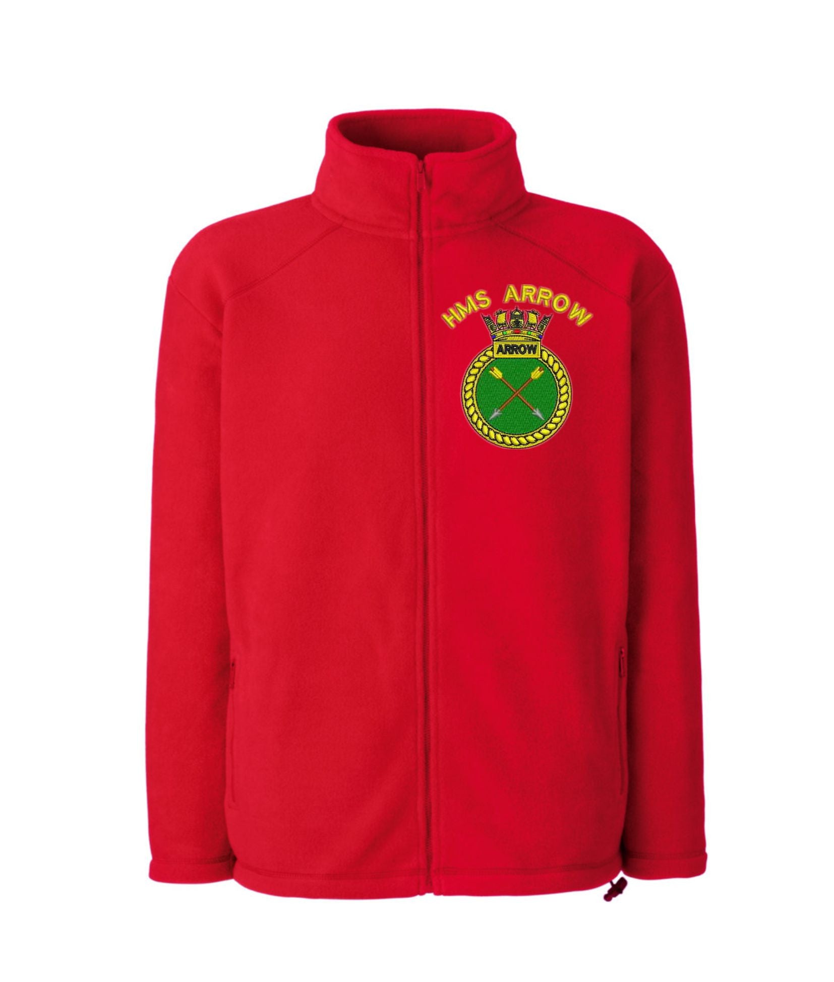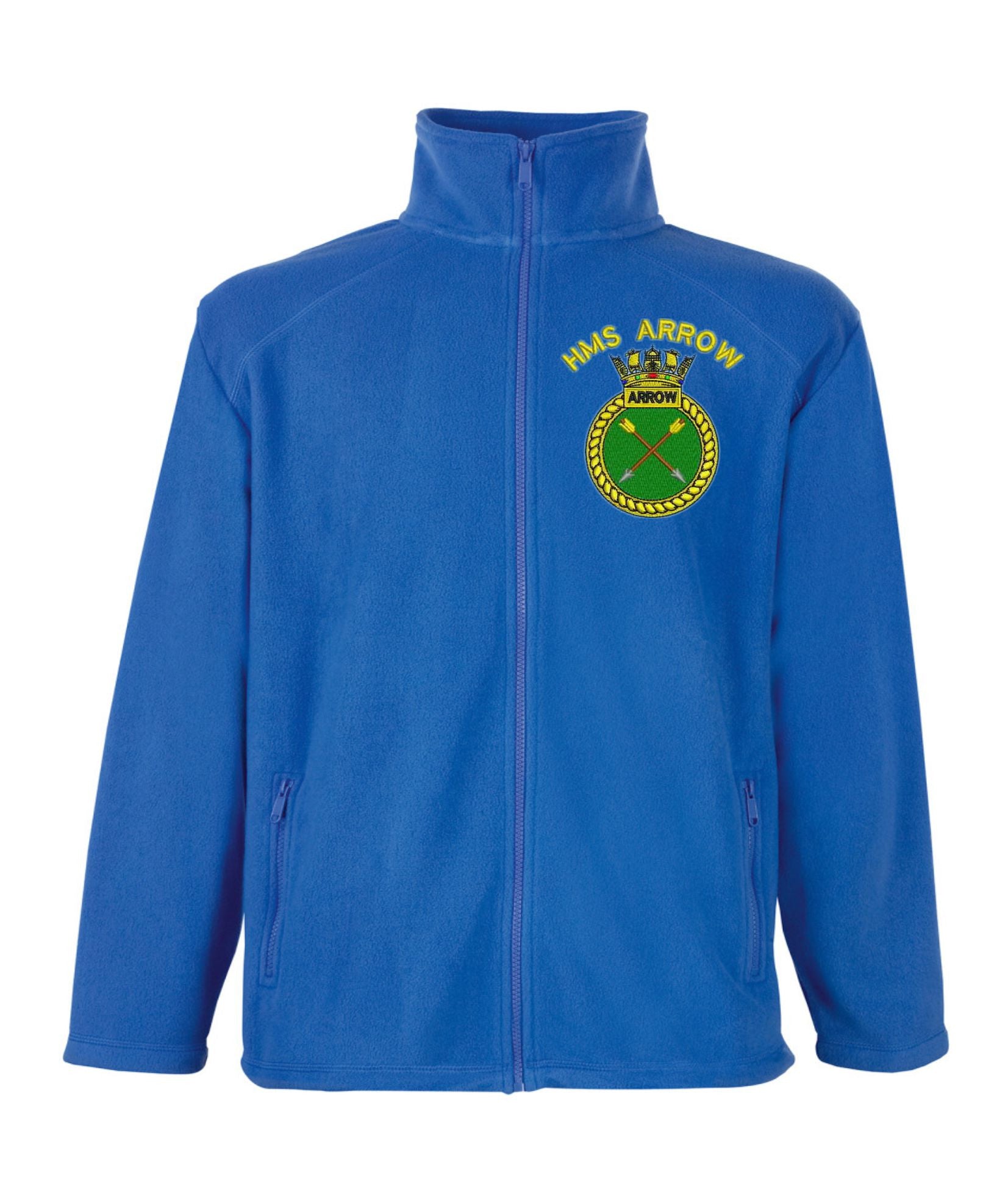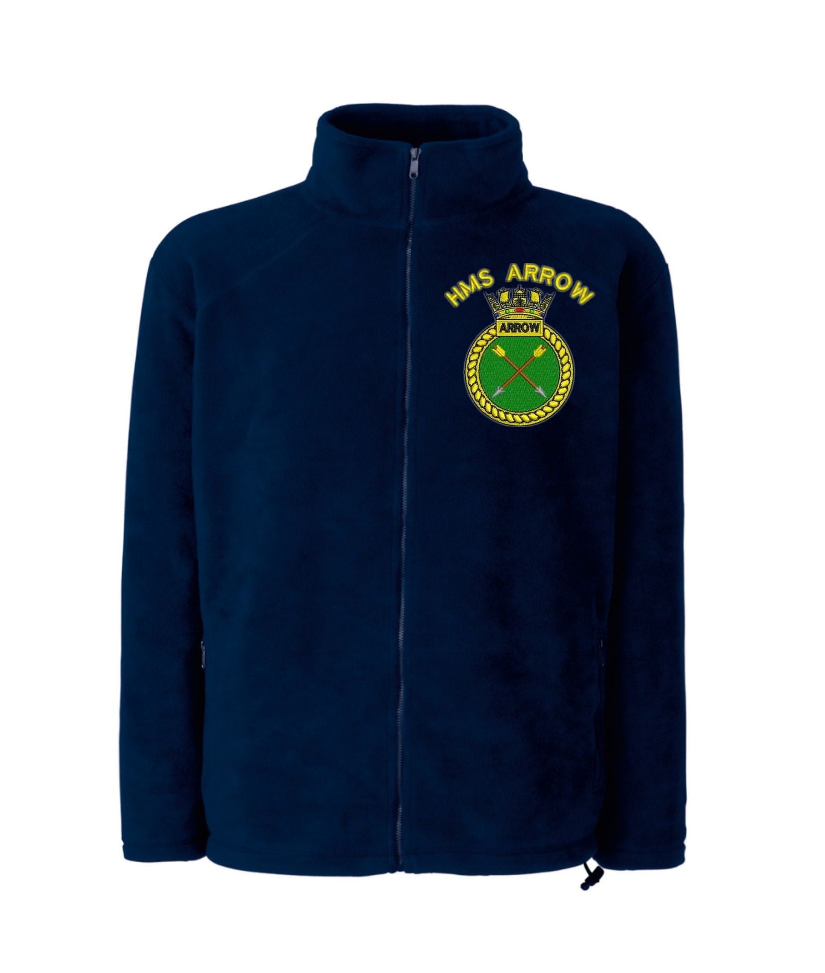 HMS Arrow Fleece clothing made all clothing . The crest is then embroidered onto the Fleece eafter you have selected the Size, Colour and Qty. Please allow up to three working days for your order to be processed as the item has to be embroidered first. Large orders of 15 or more may take longer.