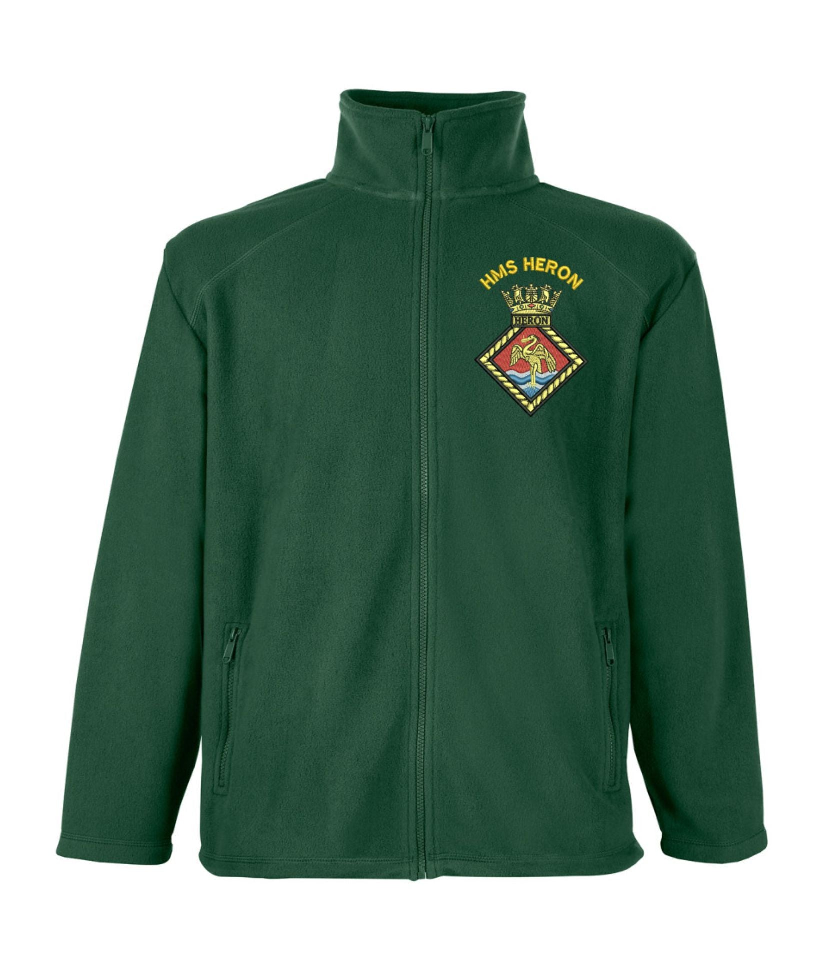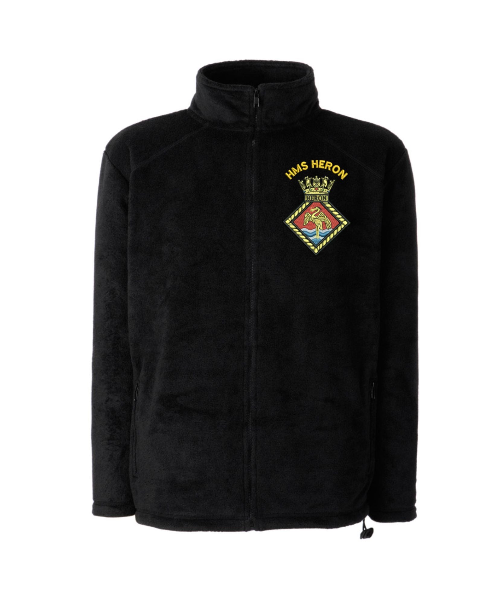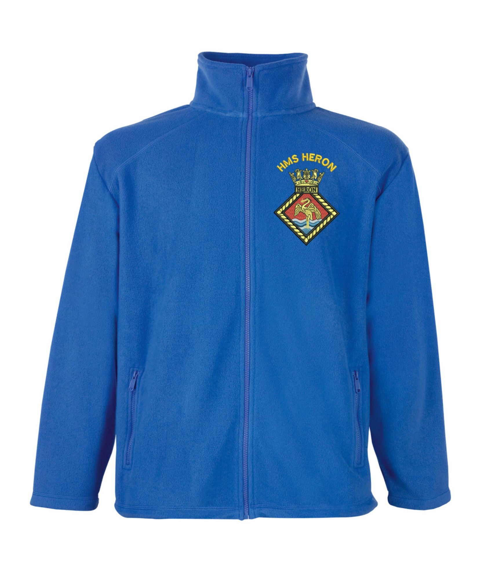 HMS Heron Fleece clothing made all clothing . The crest is then embroidered onto the Fleece after you have selected the Size, Colour and Qty. Please allow up to three working days for your order to be processed as the item has to be embroidered first. Large orders of 15 or more may take longer.