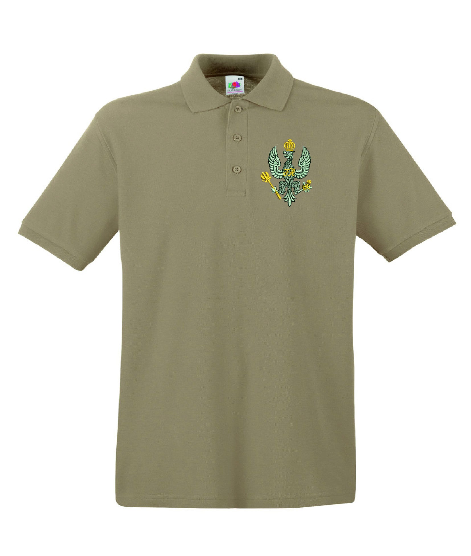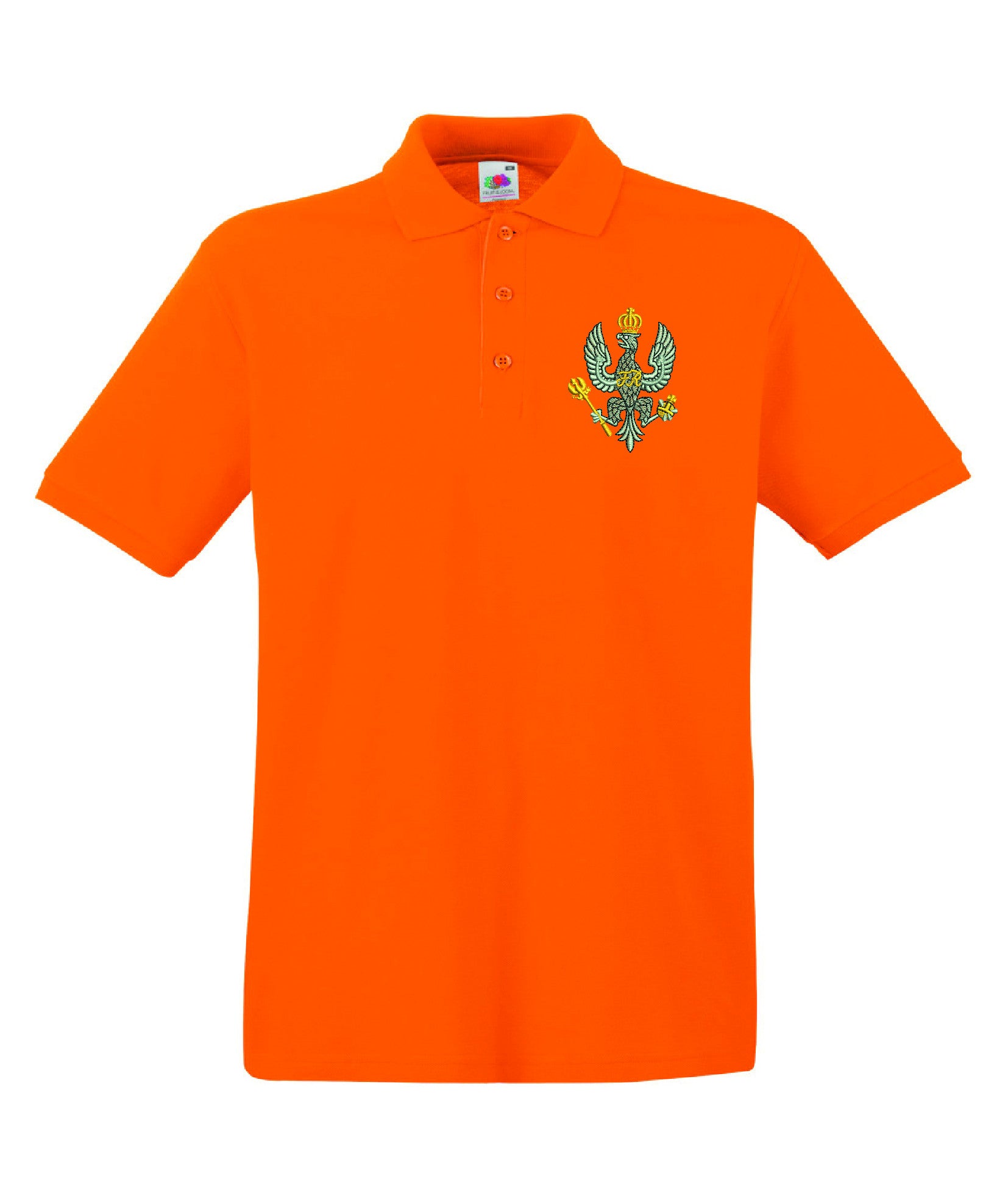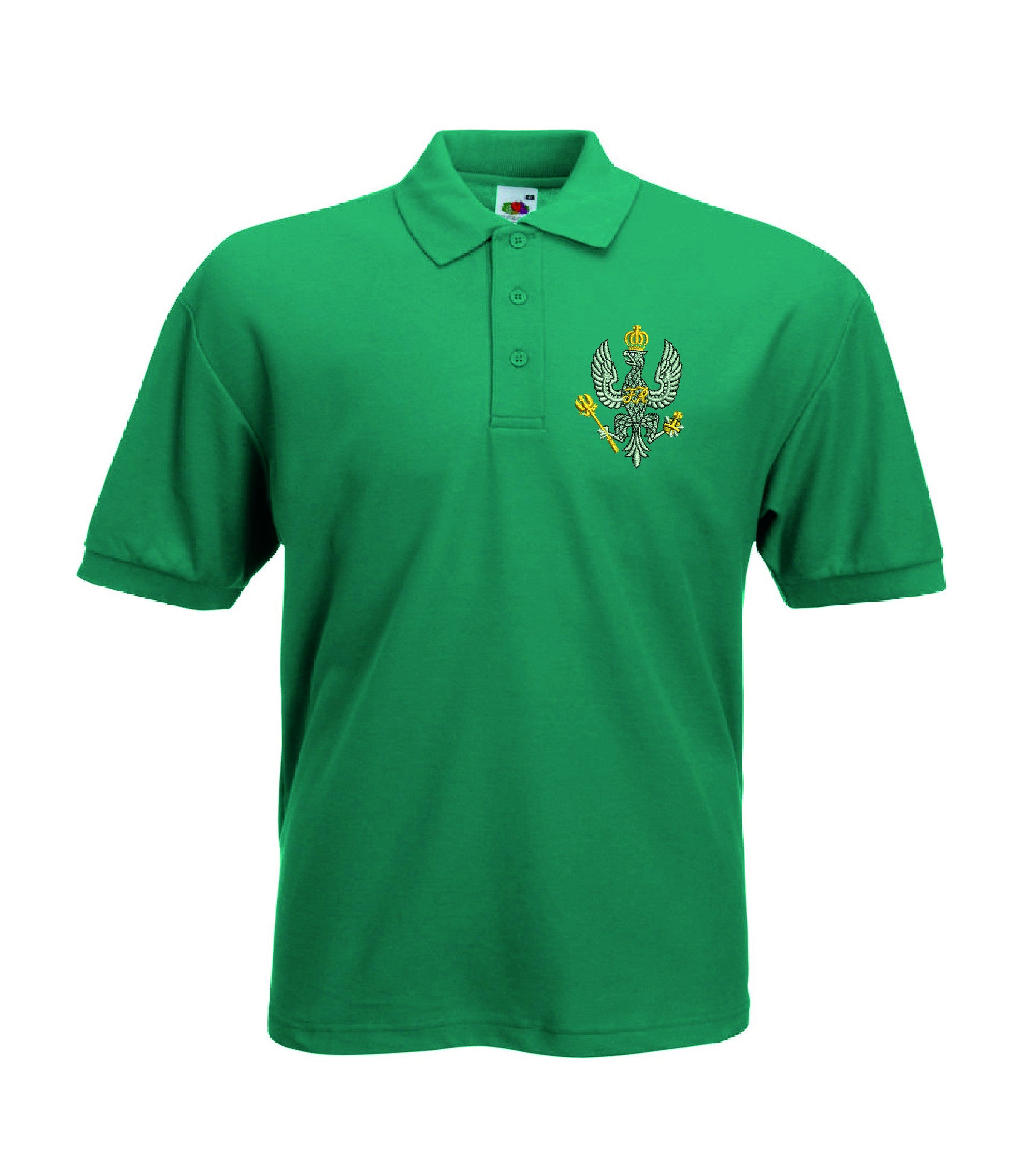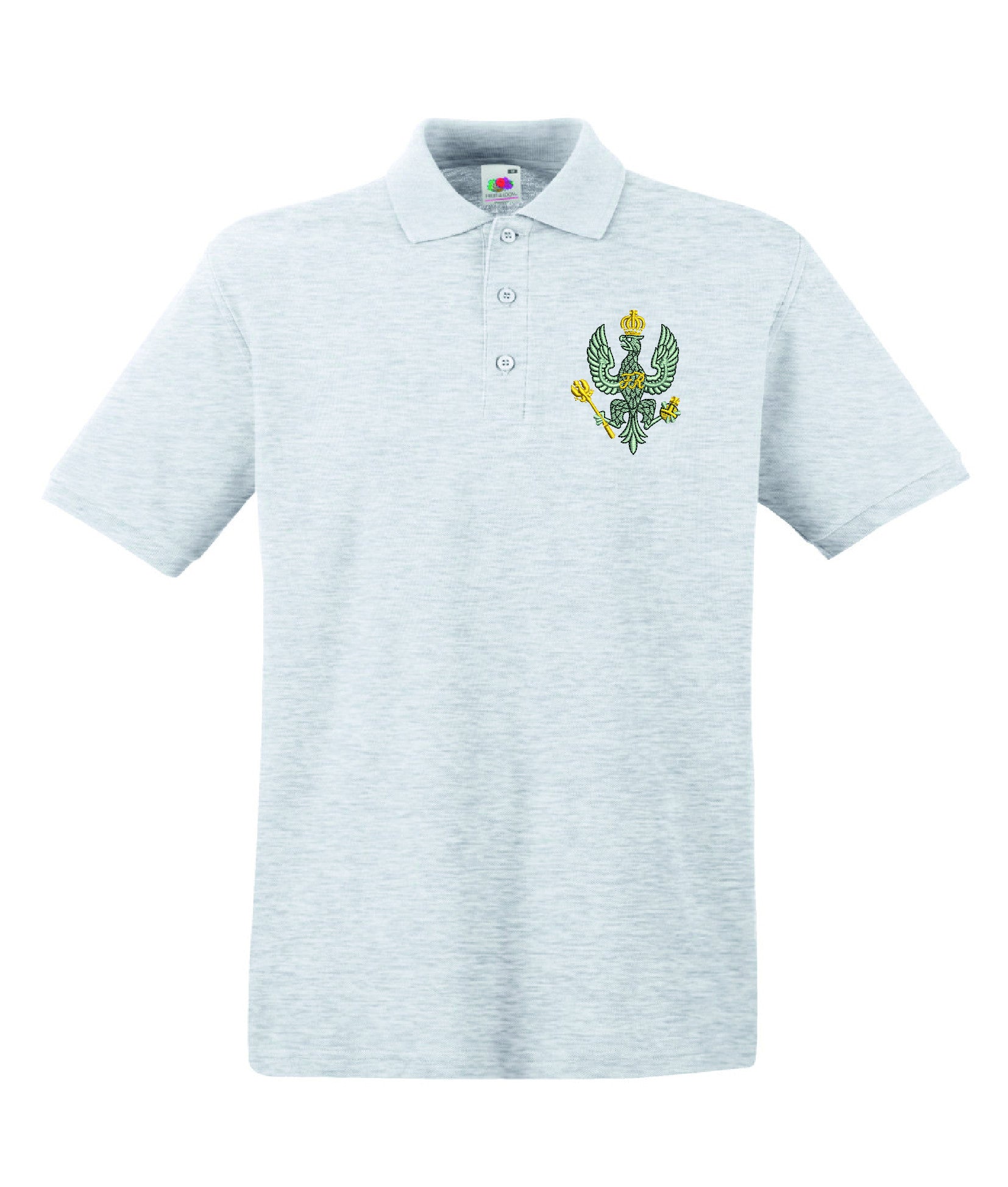 Kings Royal Hussars Polo Shirts is made by Fruit of the Loom. The logo is then embroidered onto the polo shirts after you have selected the Size, Colour and Qty.  Please allow up to three working days for your order to be processed as the item has to be embroidered first.  Large orders of 15 or more may take longer.
