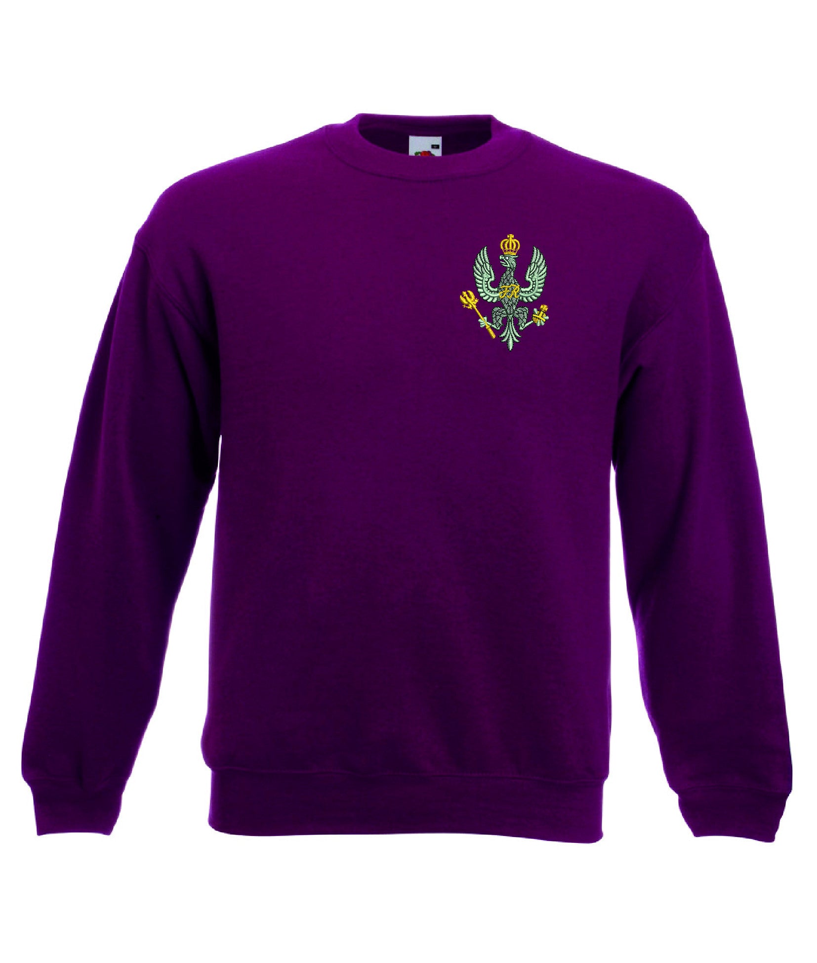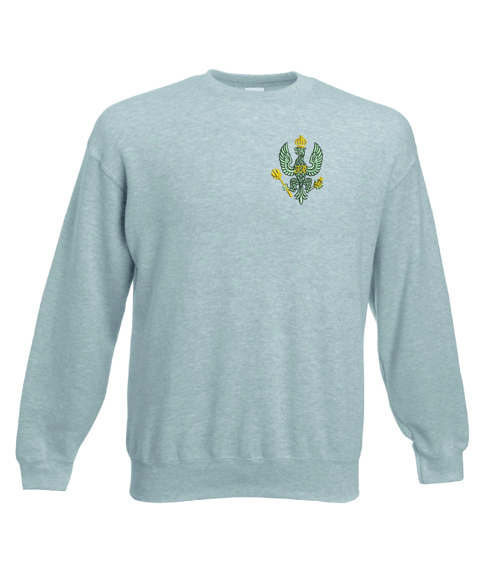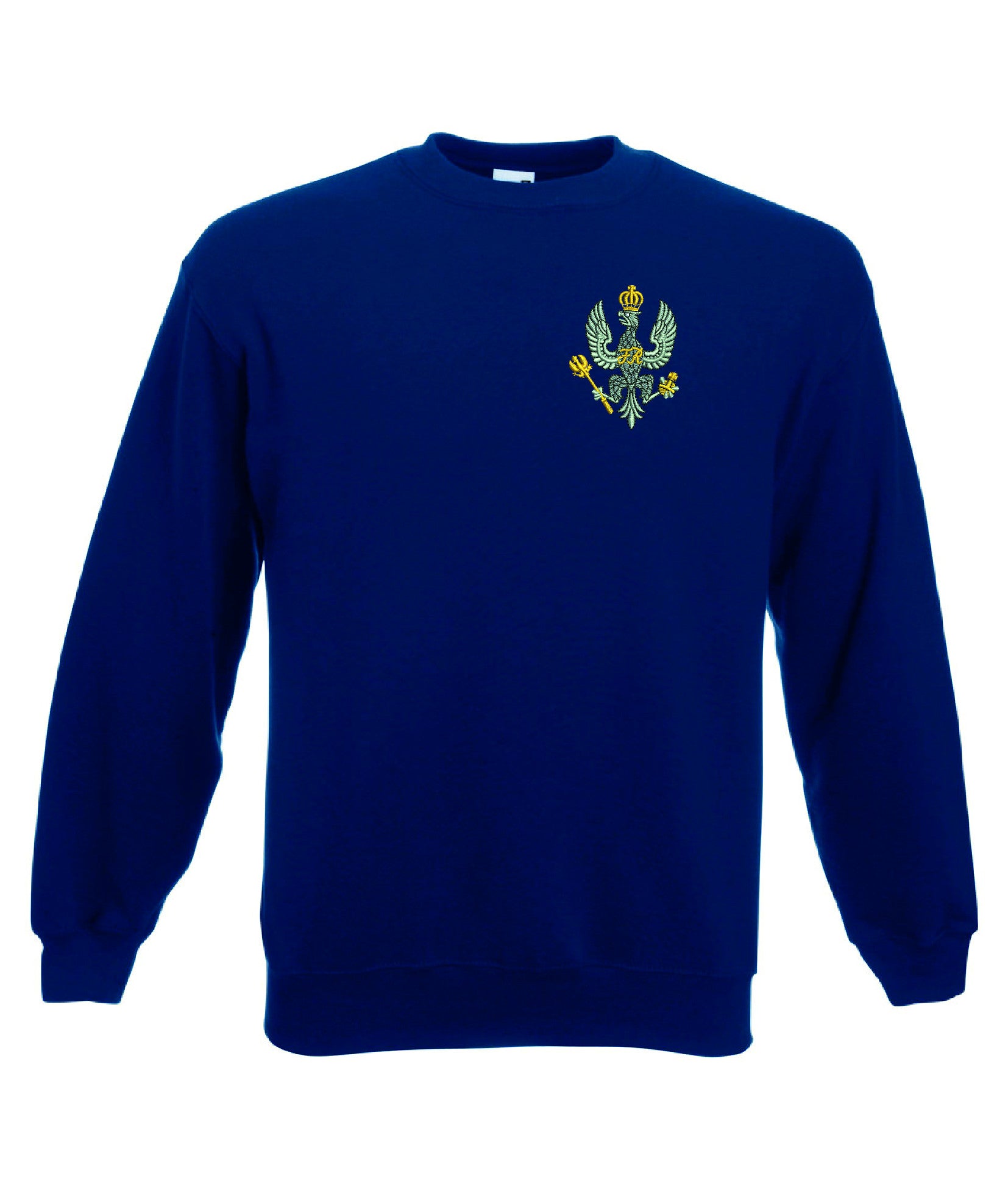 kings Royal Hussars Sweatshirts made by Fruit of the Loom. The logo is then embroidered onto the sweatshirts after you have selected the Size, Colour and Qty. Please allow up to three working days for your order to be processed as the item has to be embroidered first. Large orders of 15 or more may take longer.