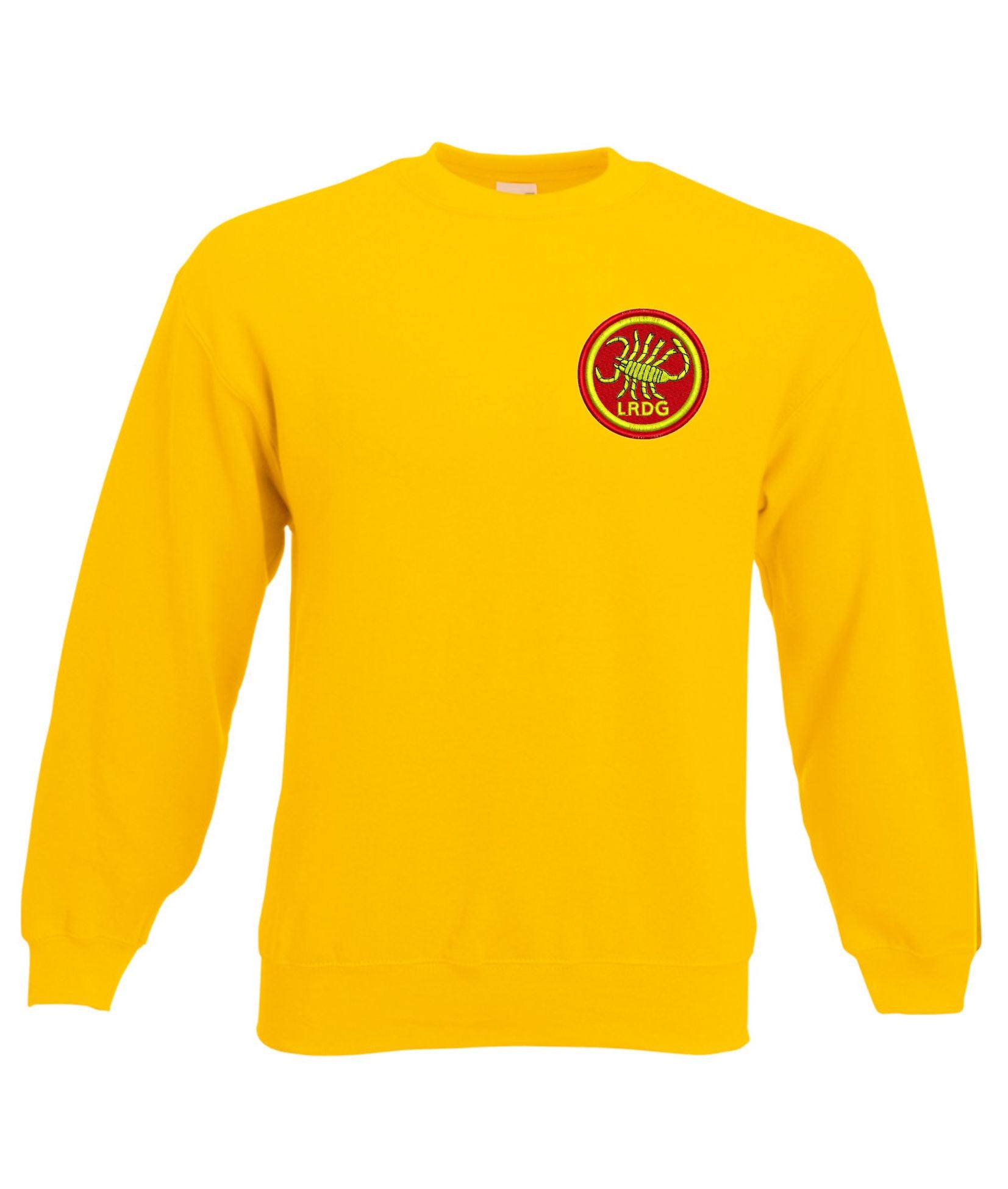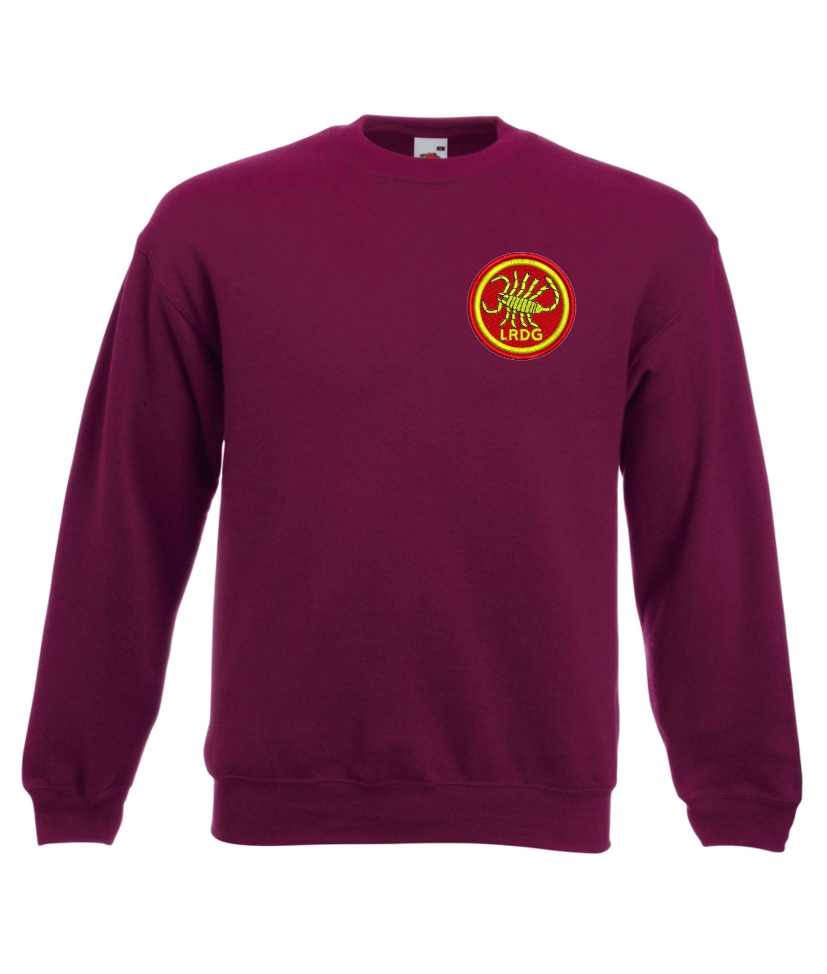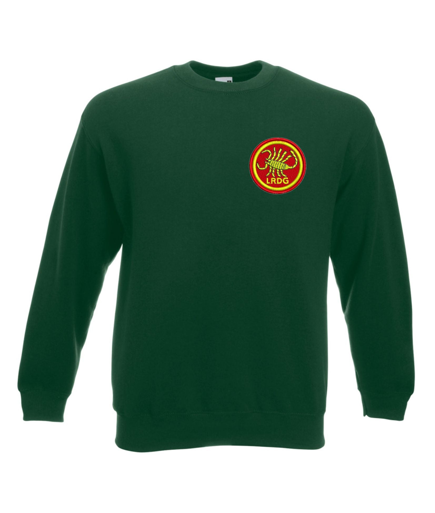 LRDG Long Range Desert Group Sweatshirts is made by Fruit of the Loom. The logo is then embroidered onto the sweatshirts after you have selected the Size, Colour and Qty.  Please allow up to three working days for your order to be processed as the item has to be embroidered first.  Large orders of 15 or more may take longer.