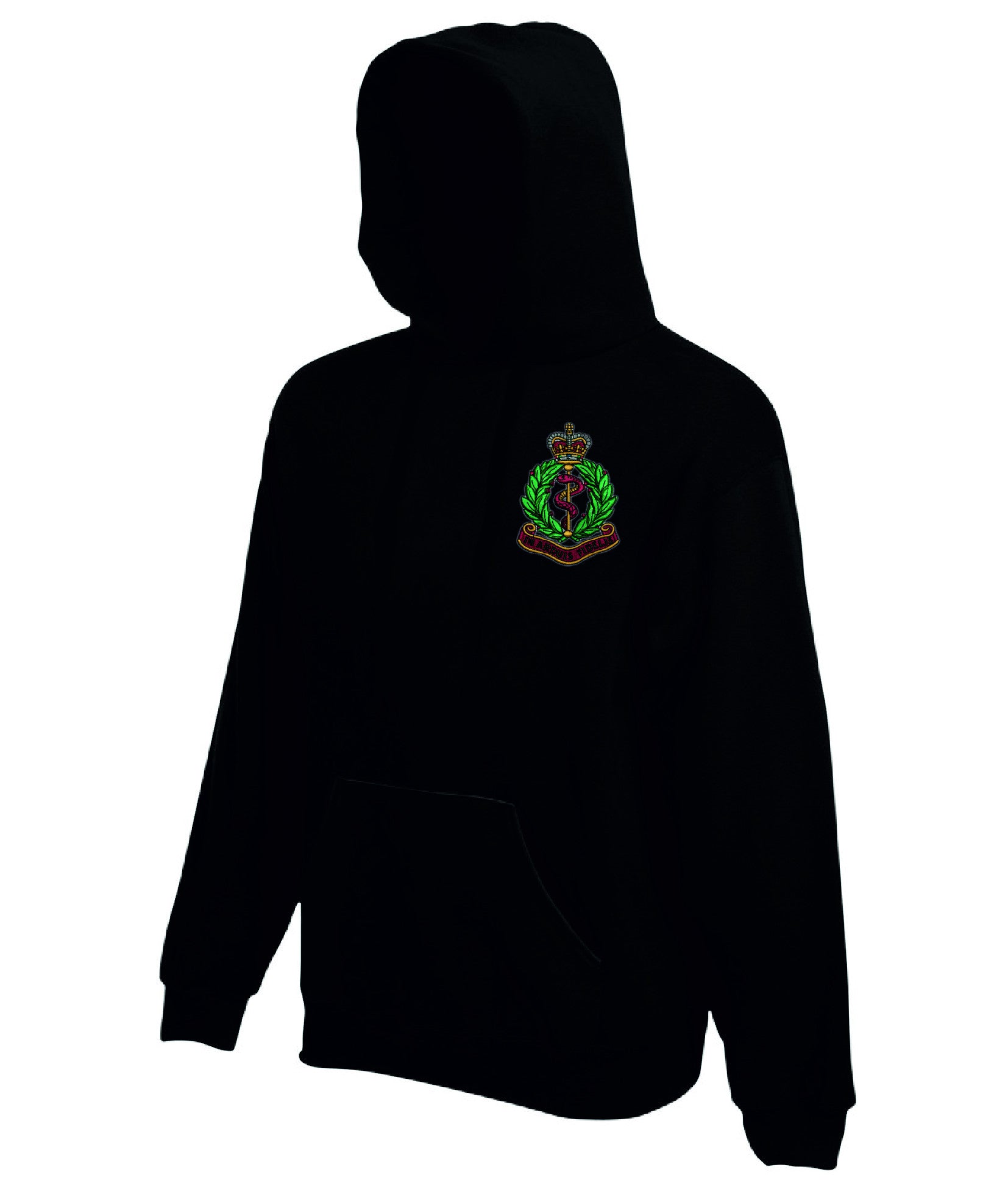 Royal Army Medical Corps Hoodie is made by Fruit of the Loom. The crest is then embroidered onto the t-shirt after you have selected the Size, Colour and Qty. Please allow up to three working days for your order to be processed as the item has to be embroidered first. Large orders of 15 or more may take longer.