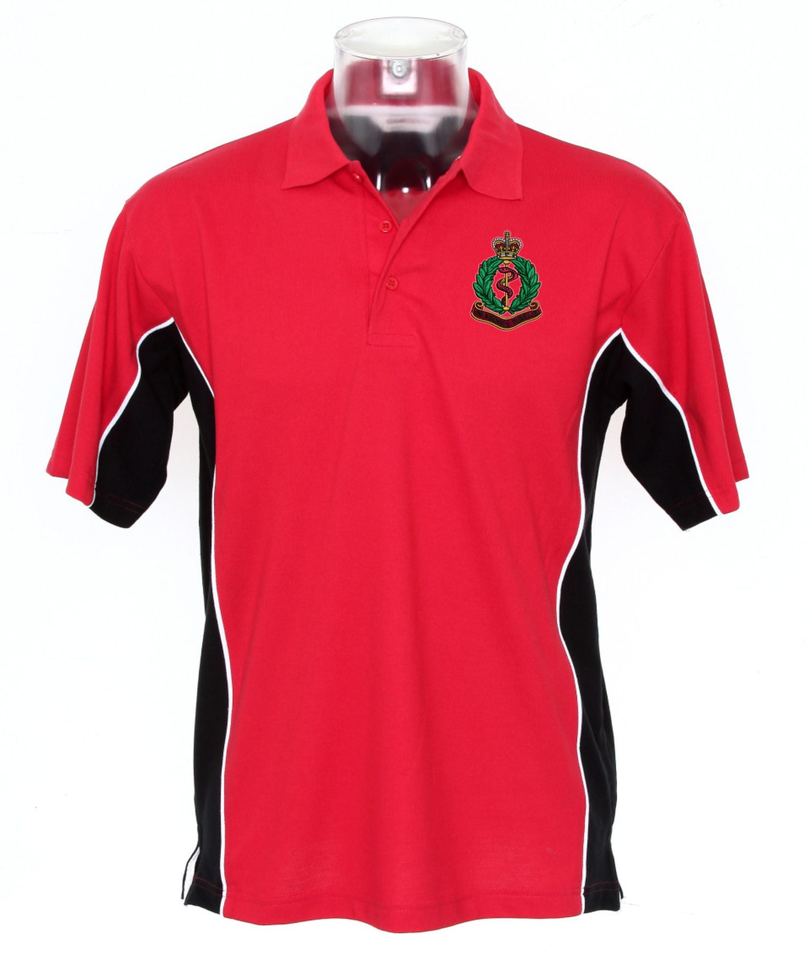 Royal Army Medical Corps Sports Polo Shirt. The logo is then embroidered onto the polo shirts after you have selected the Size, Colour and Qty. Please allow up to three working days for your order to be processed as the item has to be embroidered first. Large orders of 15 or more may take longer.