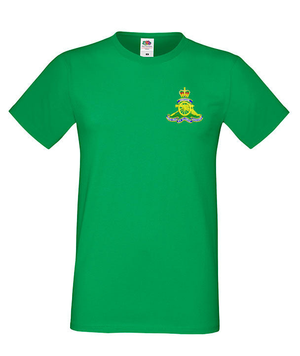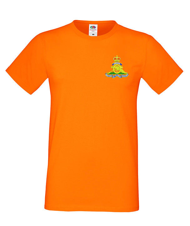 Royal Artillery MEN’S Super Soft T-Shirt is made by Fruit of the Loom. The logo is them embroidered onto the t-shirt after you have selected the Size, Colour and Qty.  Please allow up to three working days for your order to be processed as the item has to be embroidered first.  Large orders of 15 or more may take longer.