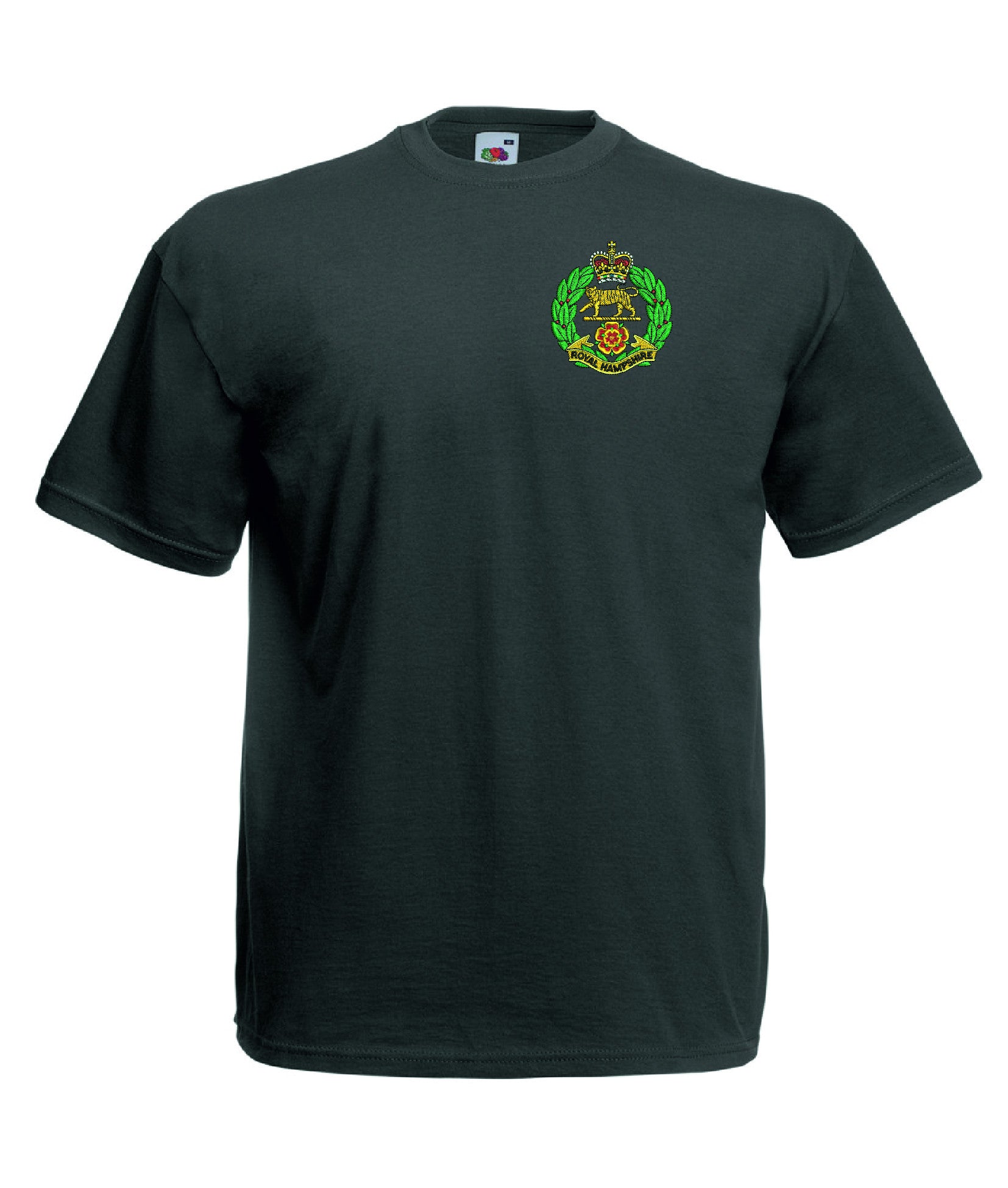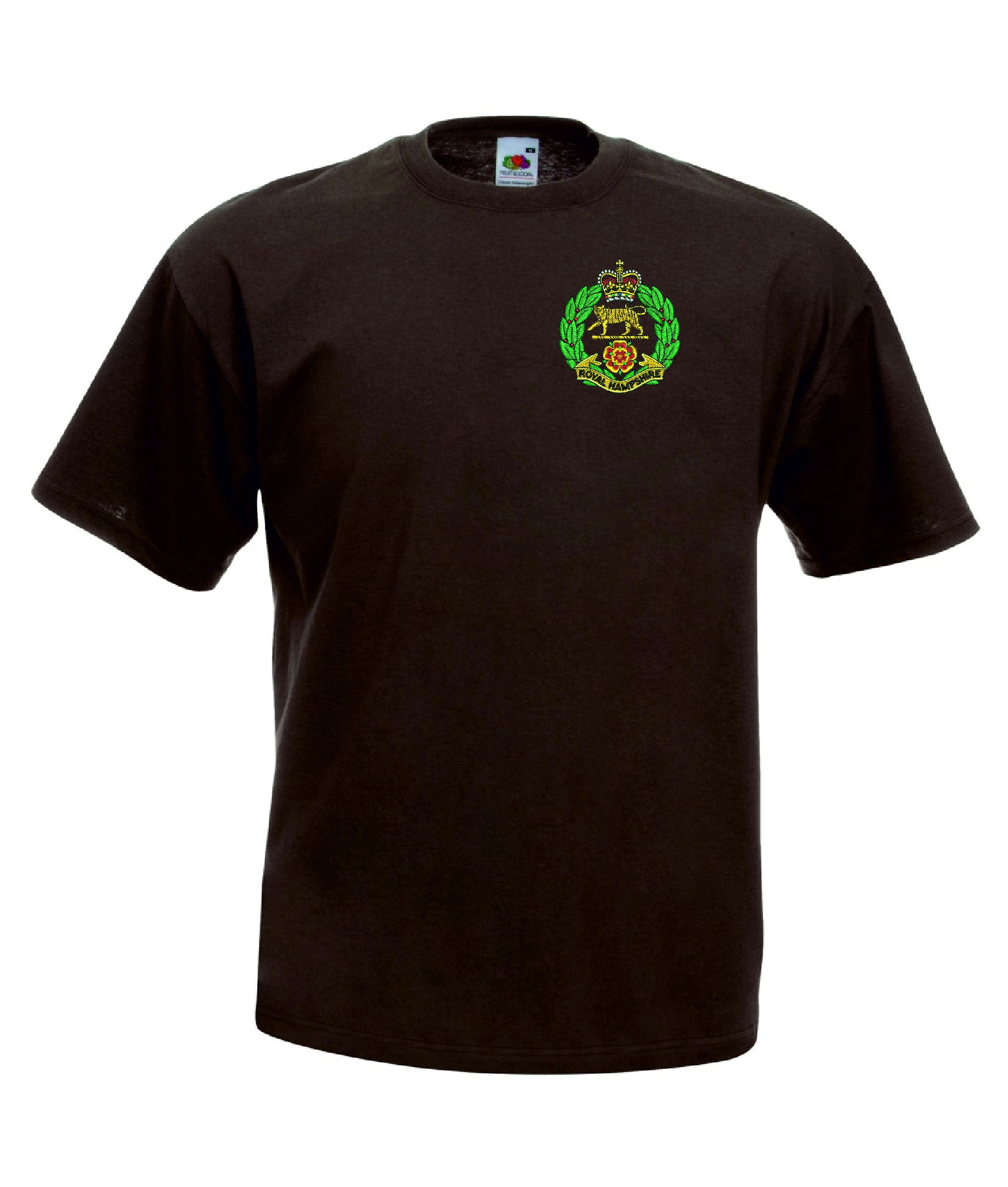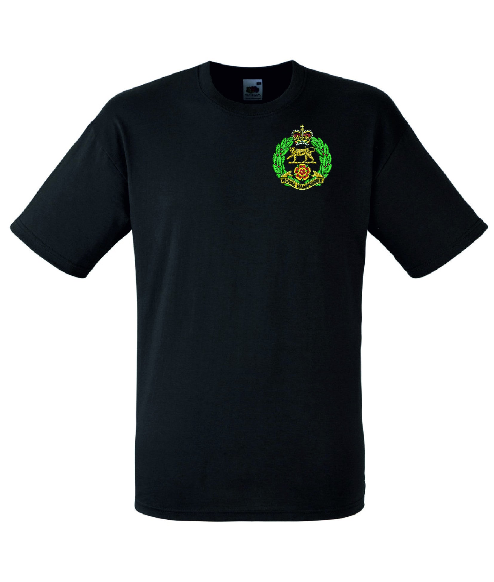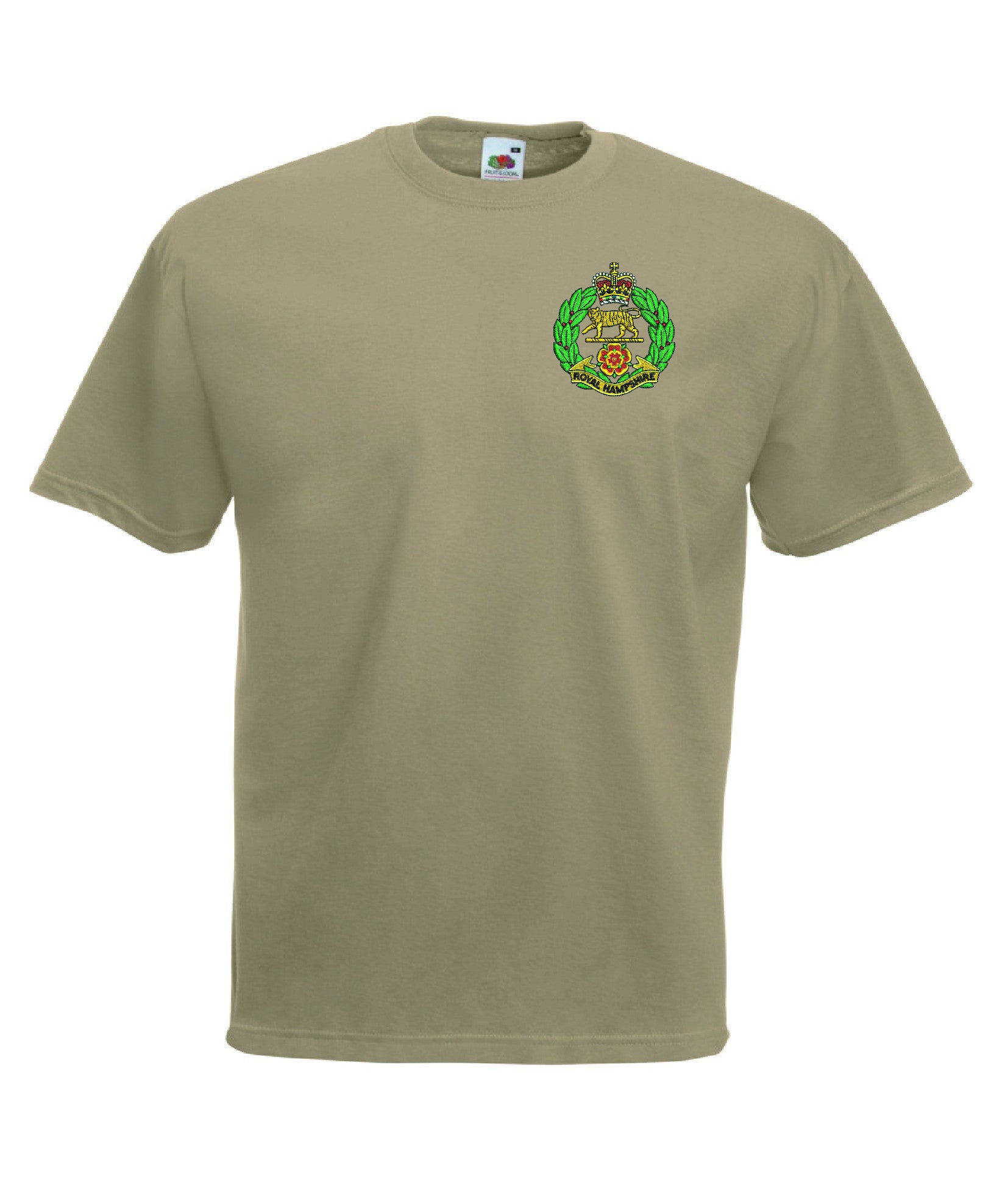 Royal Hampshire Regiment T Shirt is made by Fruit of the Loom. The Crest is them embroidered onto the regiment t-shirt after you have selected the Size, Colour and Qty. Please allow up to three working days for your order to be processed as the item has to be embroidered first. Large orders of 15 or more may take longer.