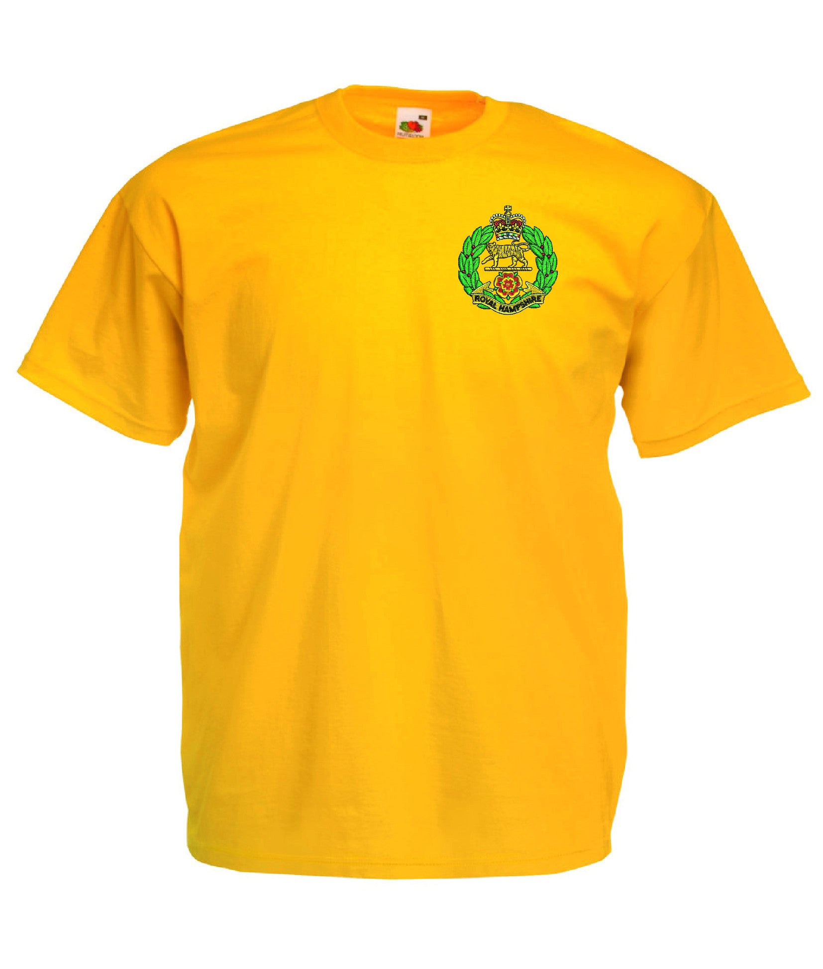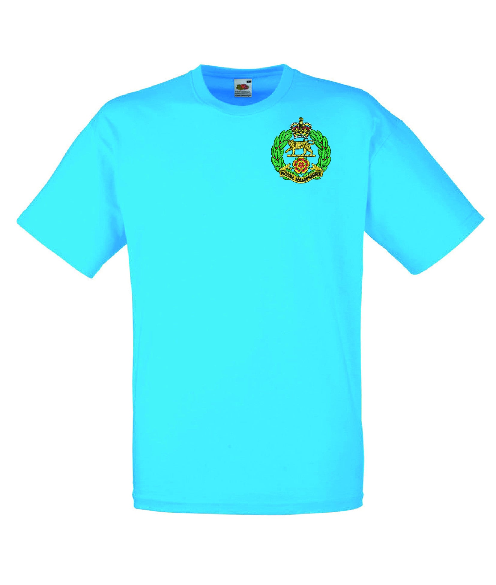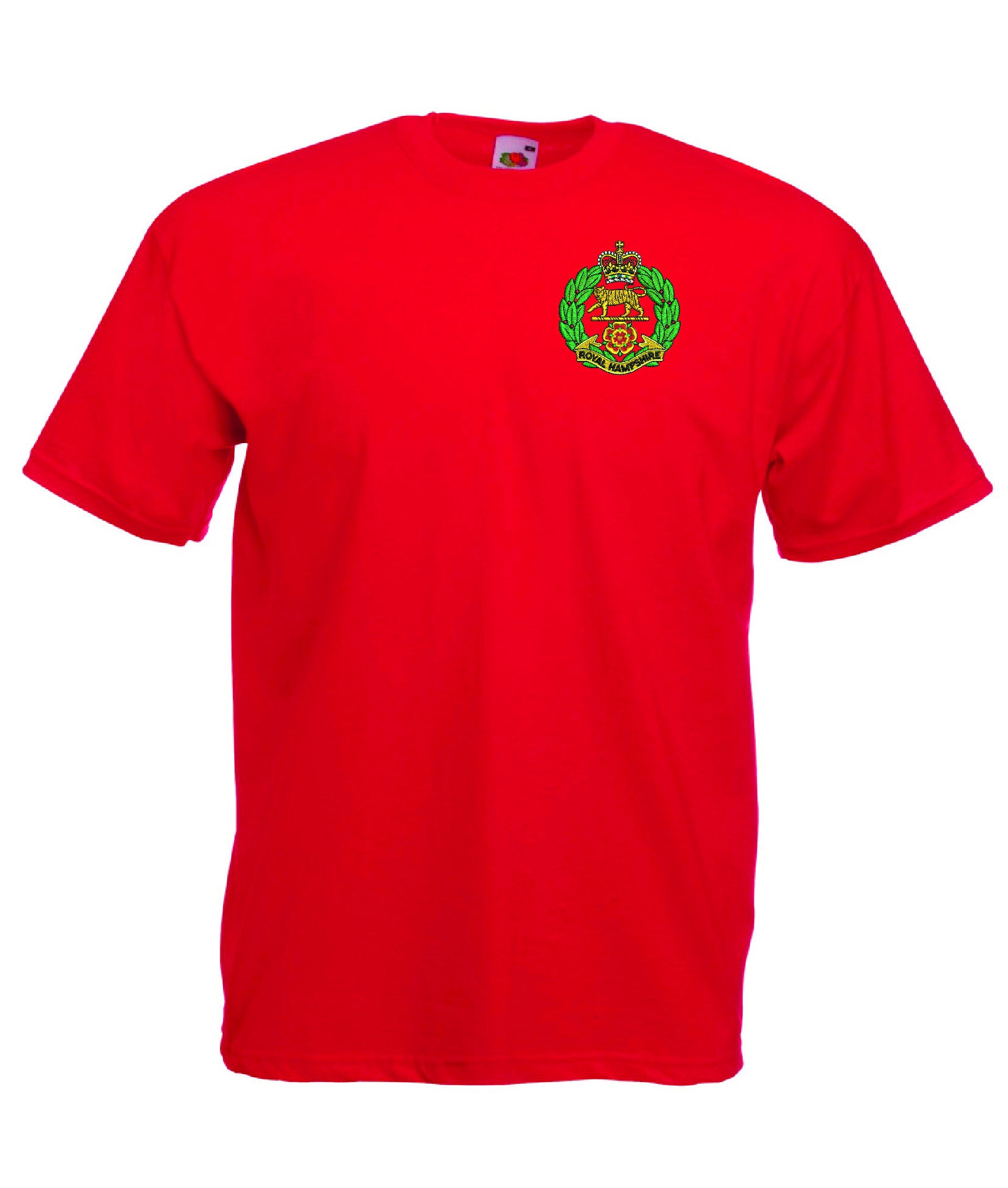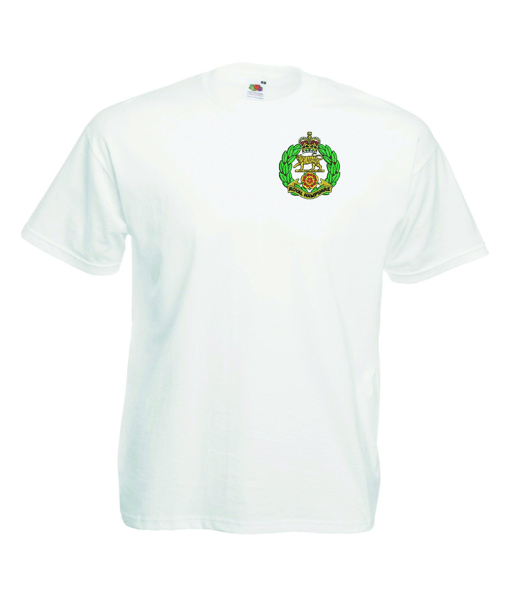 Royal Hampshire Regiment T Shirt is made by Fruit of the Loom. The Crest is them embroidered onto the regiment t-shirt after you have selected the Size, Colour and Qty. Please allow up to three working days for your order to be processed as the item has to be embroidered first. Large orders of 15 or more may take longer.