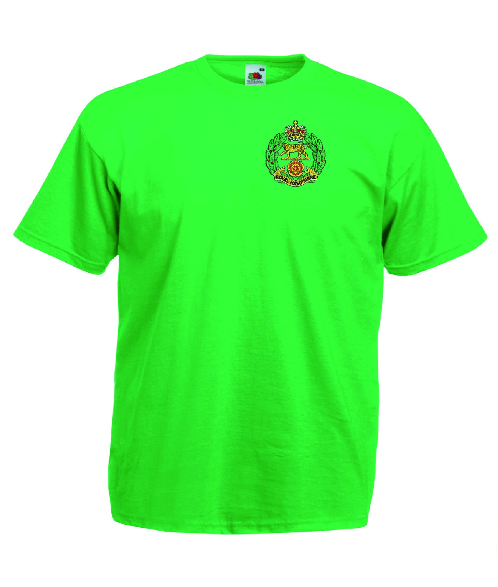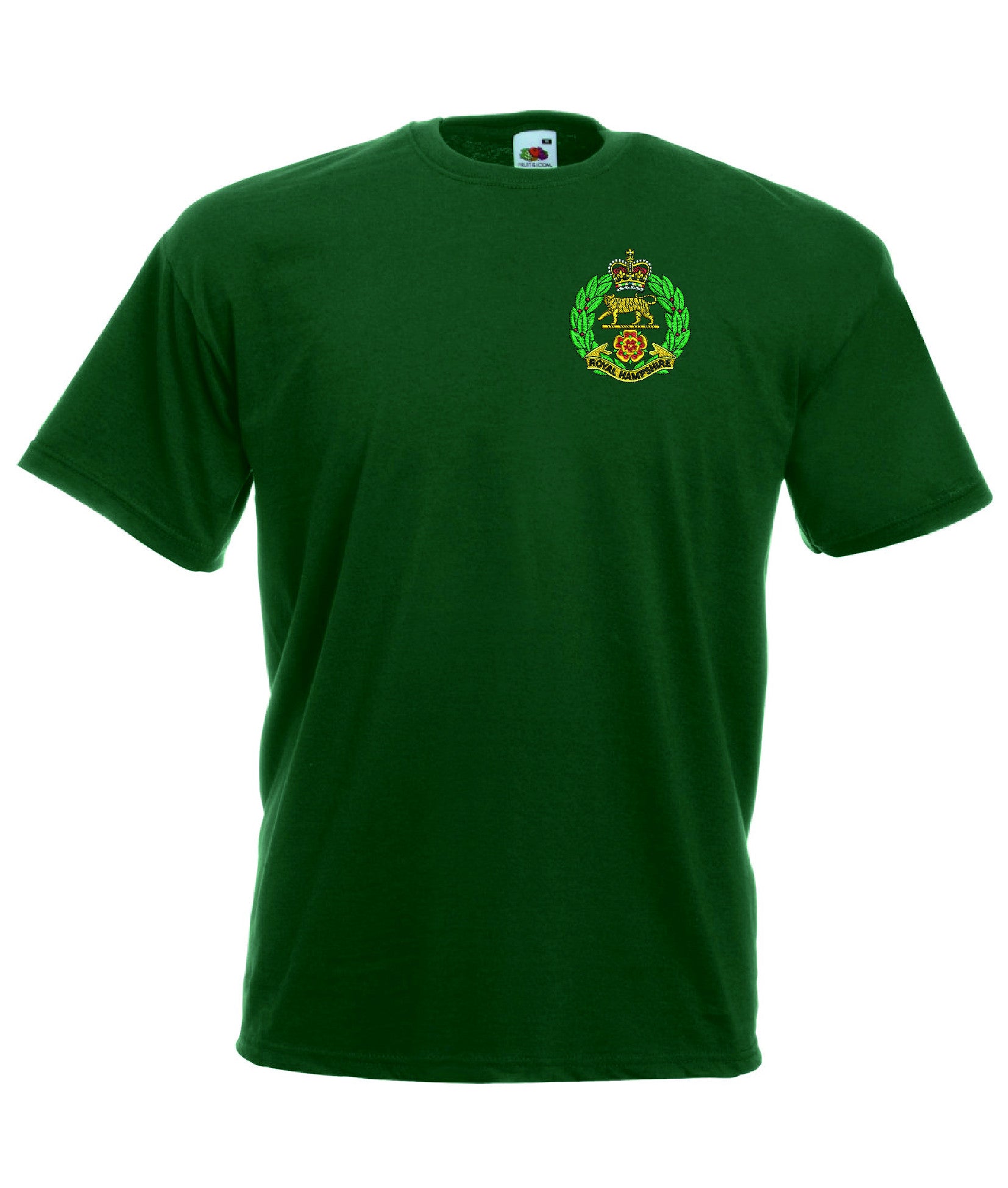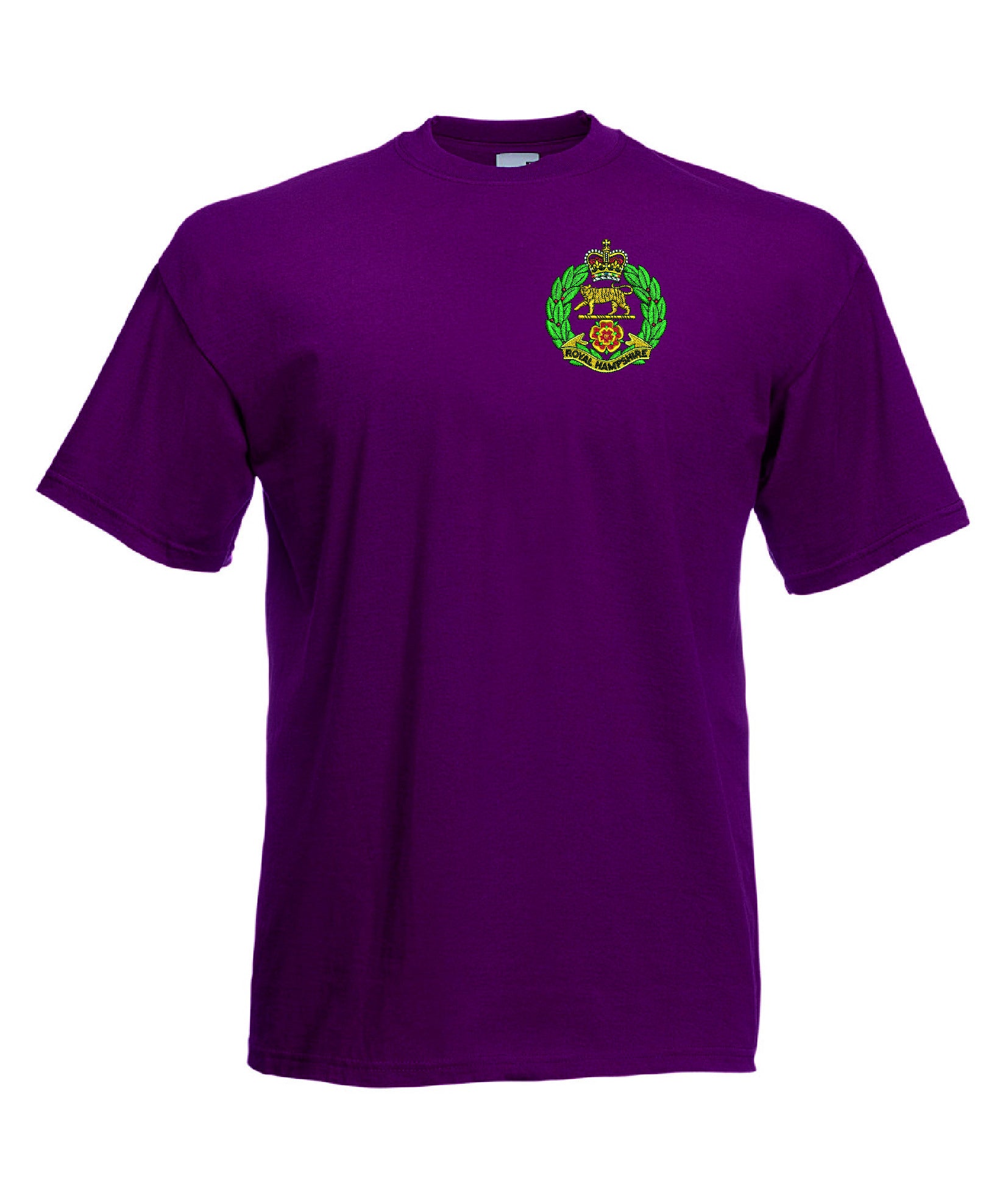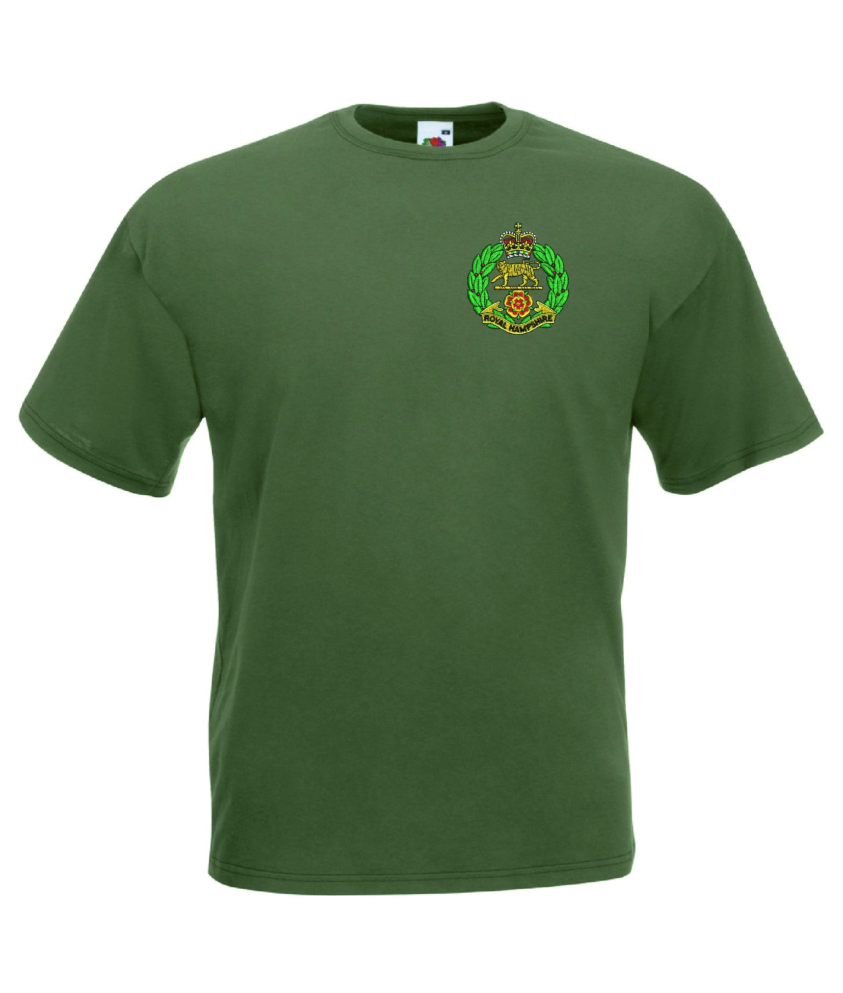 Royal Hampshire Regiment T Shirt is made by Fruit of the Loom. The Crest is them embroidered onto the regiment t-shirt after you have selected the Size, Colour and Qty. Please allow up to three working days for your order to be processed as the item has to be embroidered first. Large orders of 15 or more may take longer.