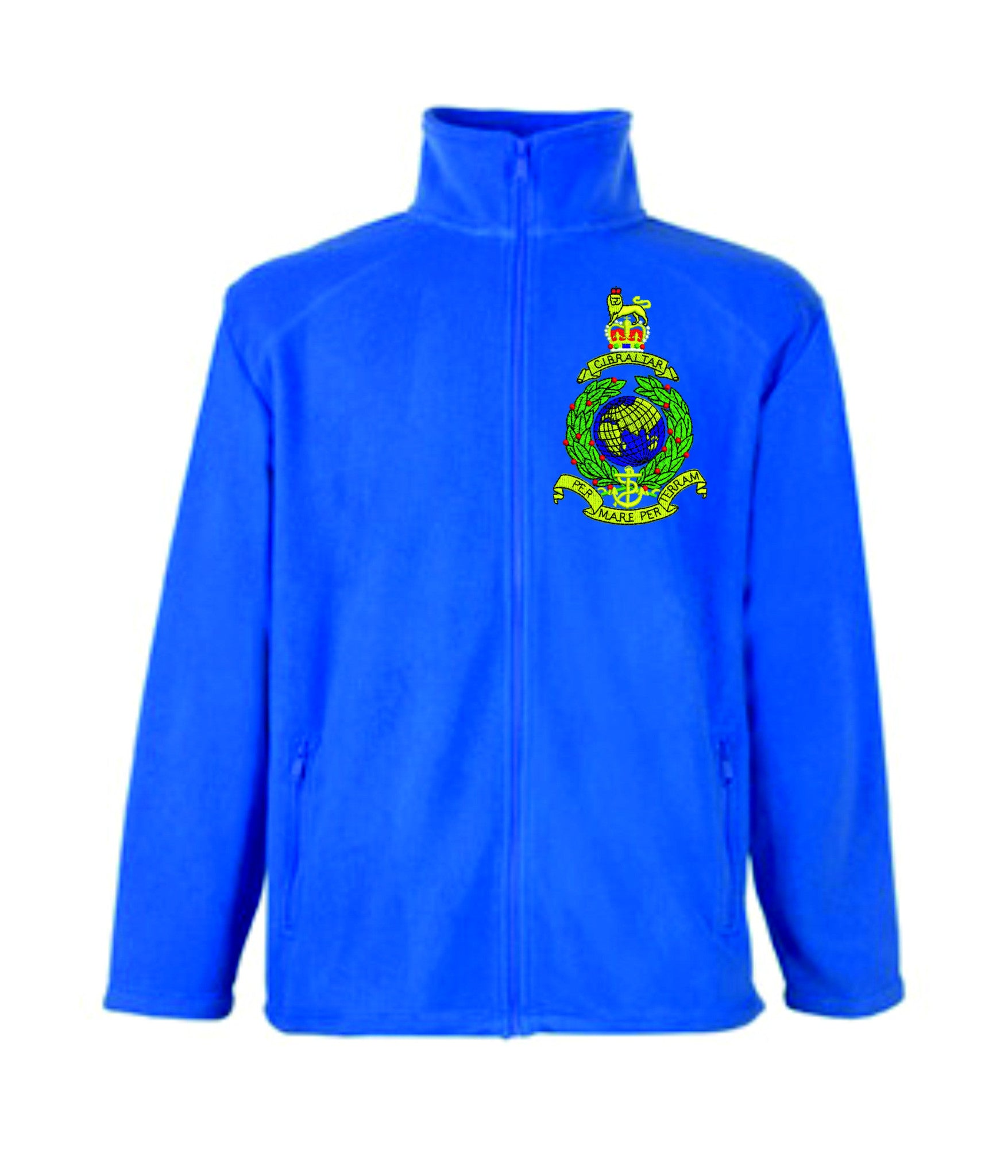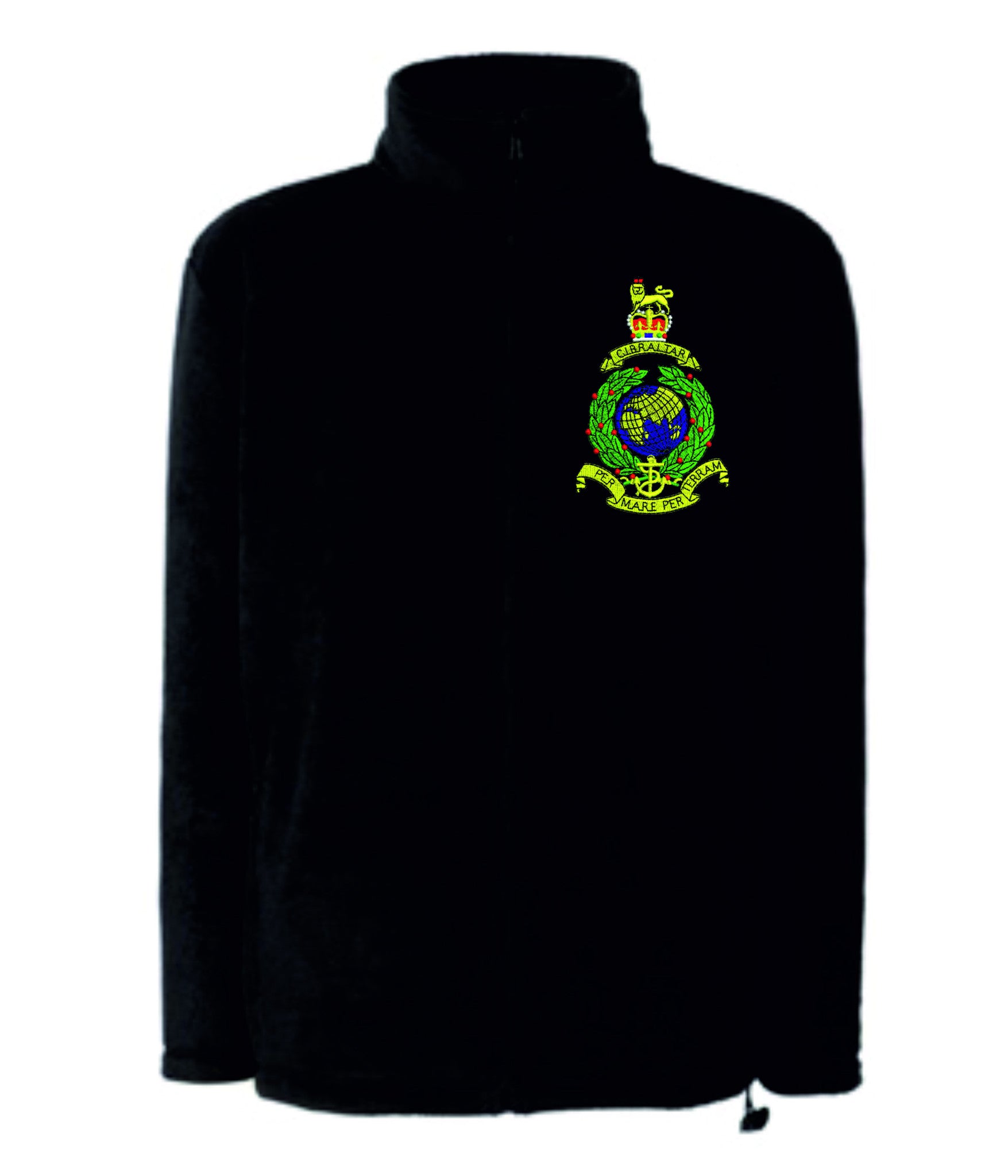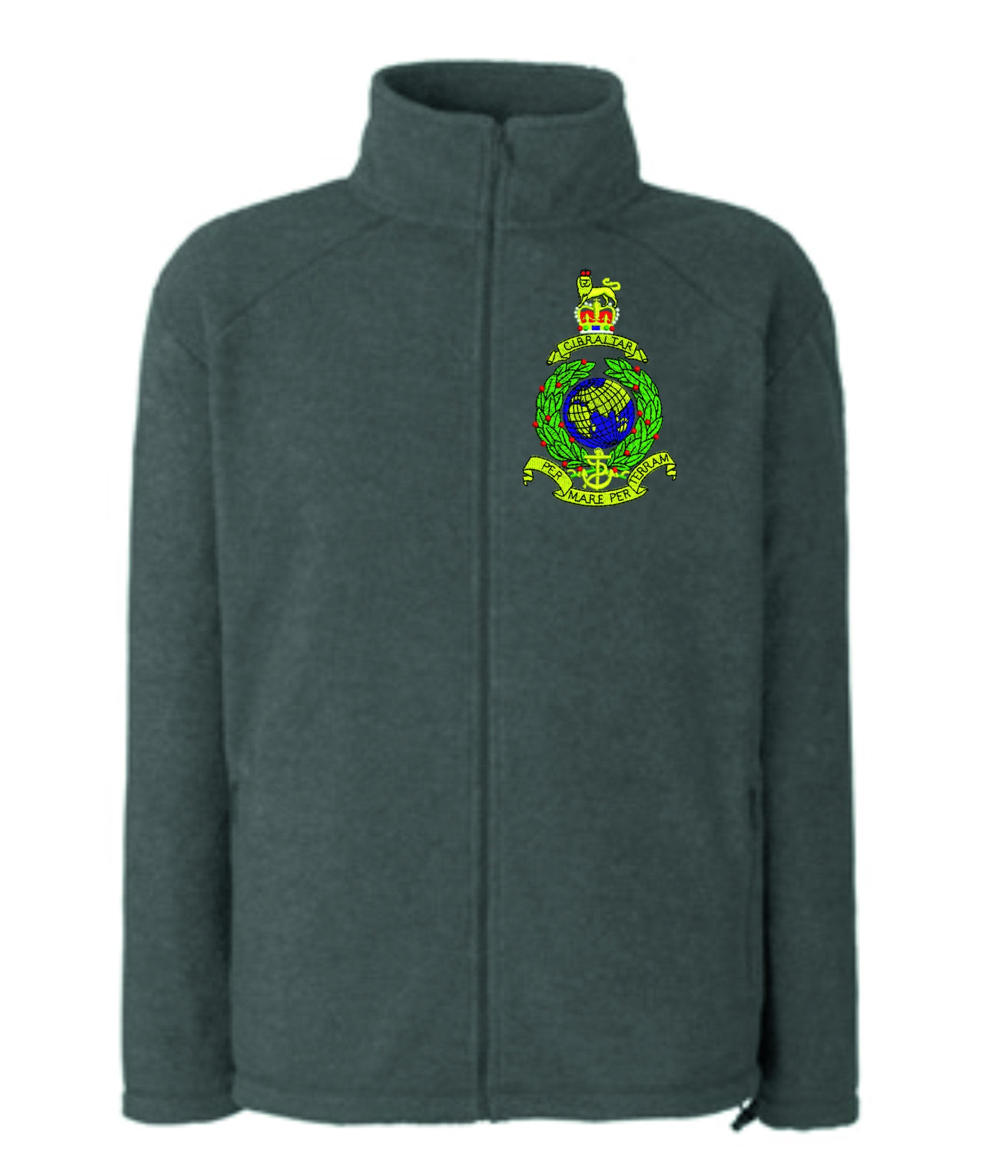 Royal marines globe and laurels Fleece is made by Fruit of the Loom. The logo is then embroidered onto the Fleece after you have selected the Size, Colour and Qty. Please allow up to three working days for your order to be processed as the item has to be embroidered first. Large orders of 15 or more may take longer.