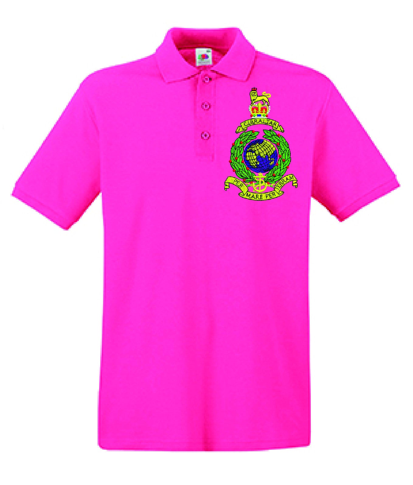 Royal Marines Polo Shirt is made by Fruit of the Loom. The logo is then embroidered onto the polo shirt after you have selected the Size, Colour and Qty. Please allow up to three working days for your order to be processed as the item has to be embroidered first. Large orders of 15 or more may take longer.