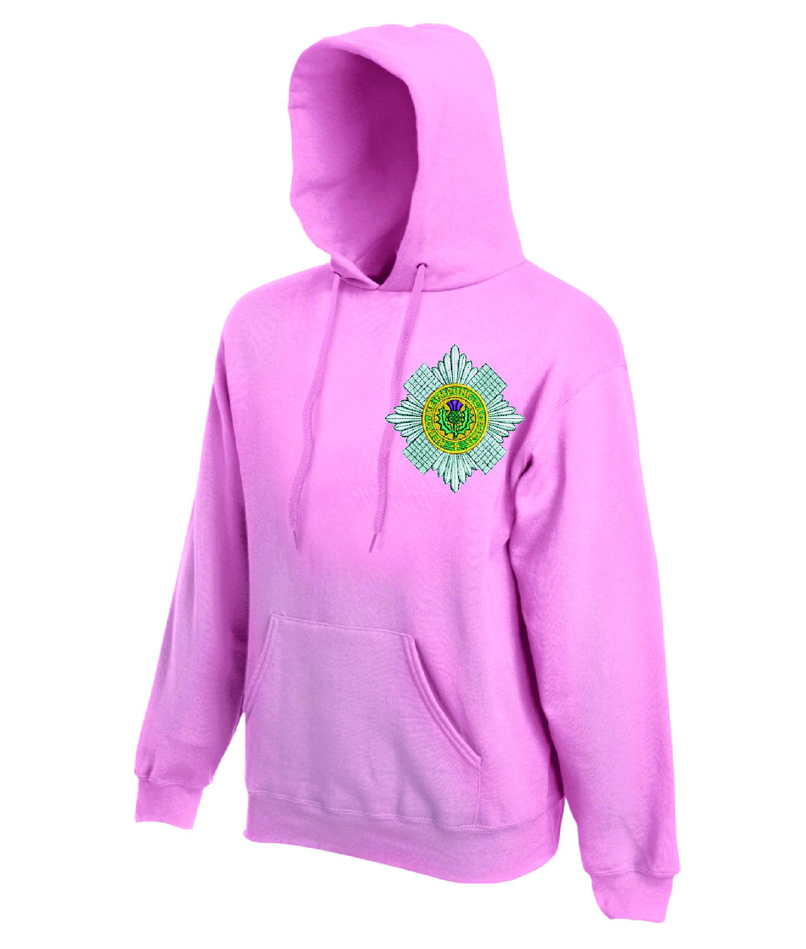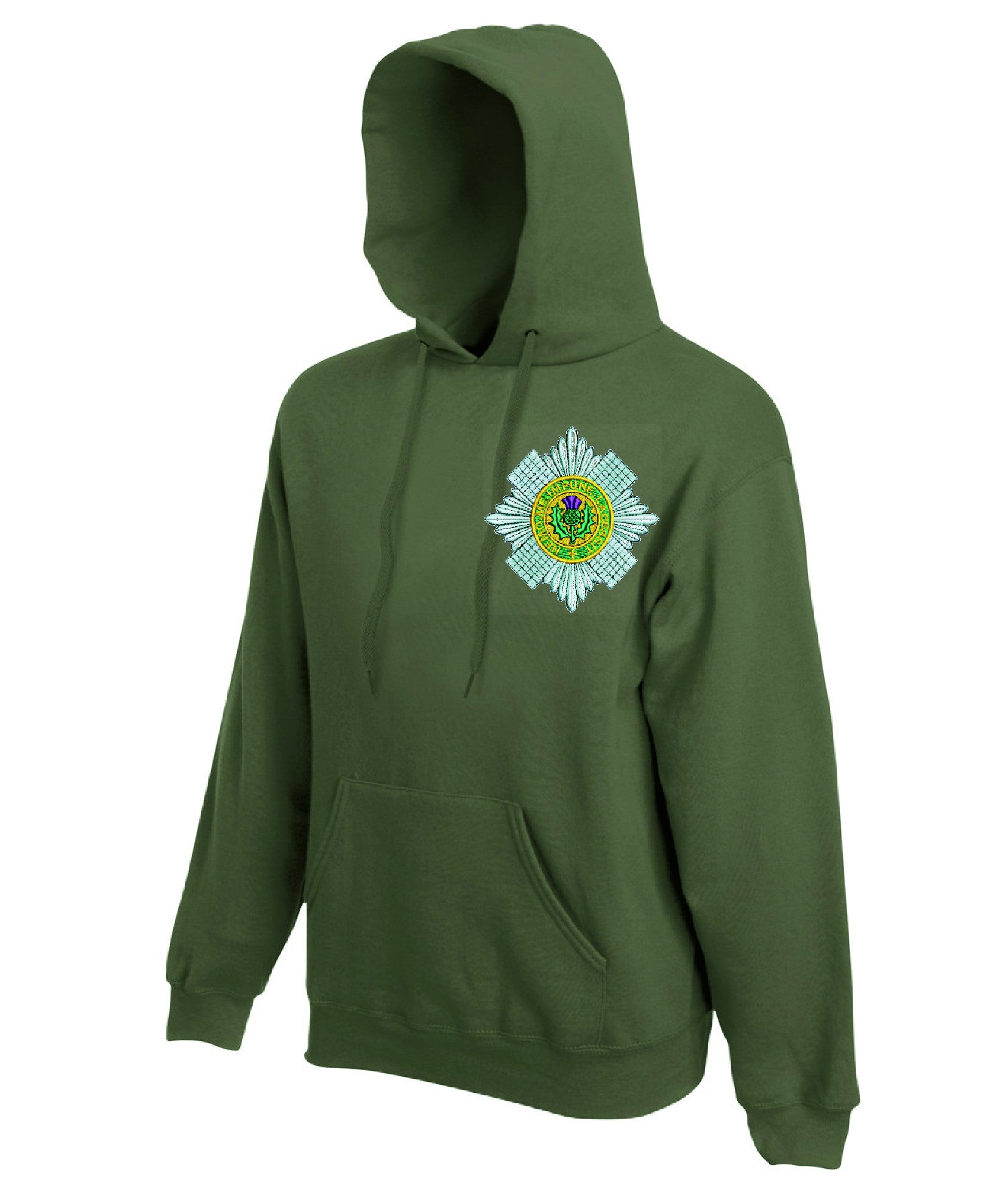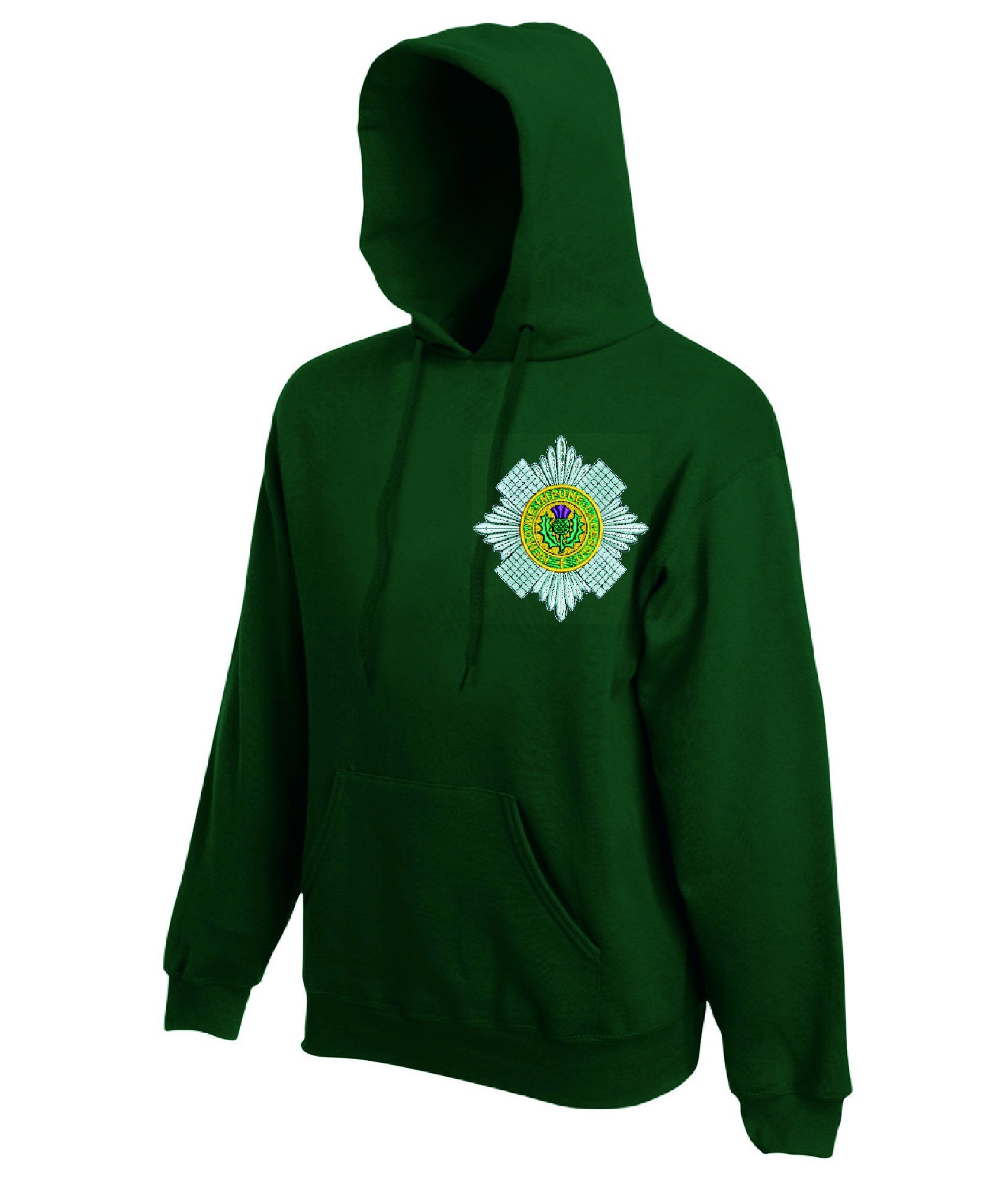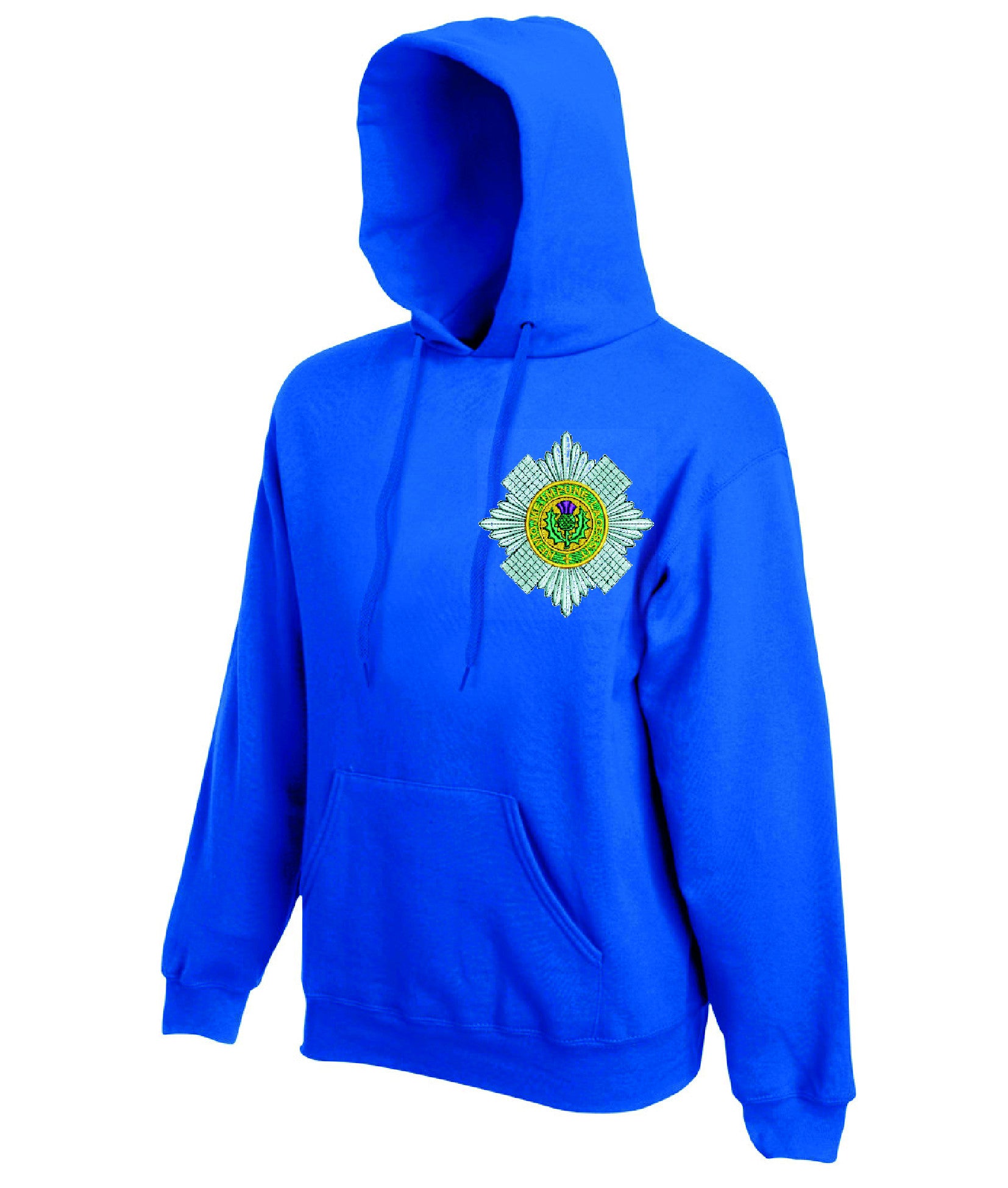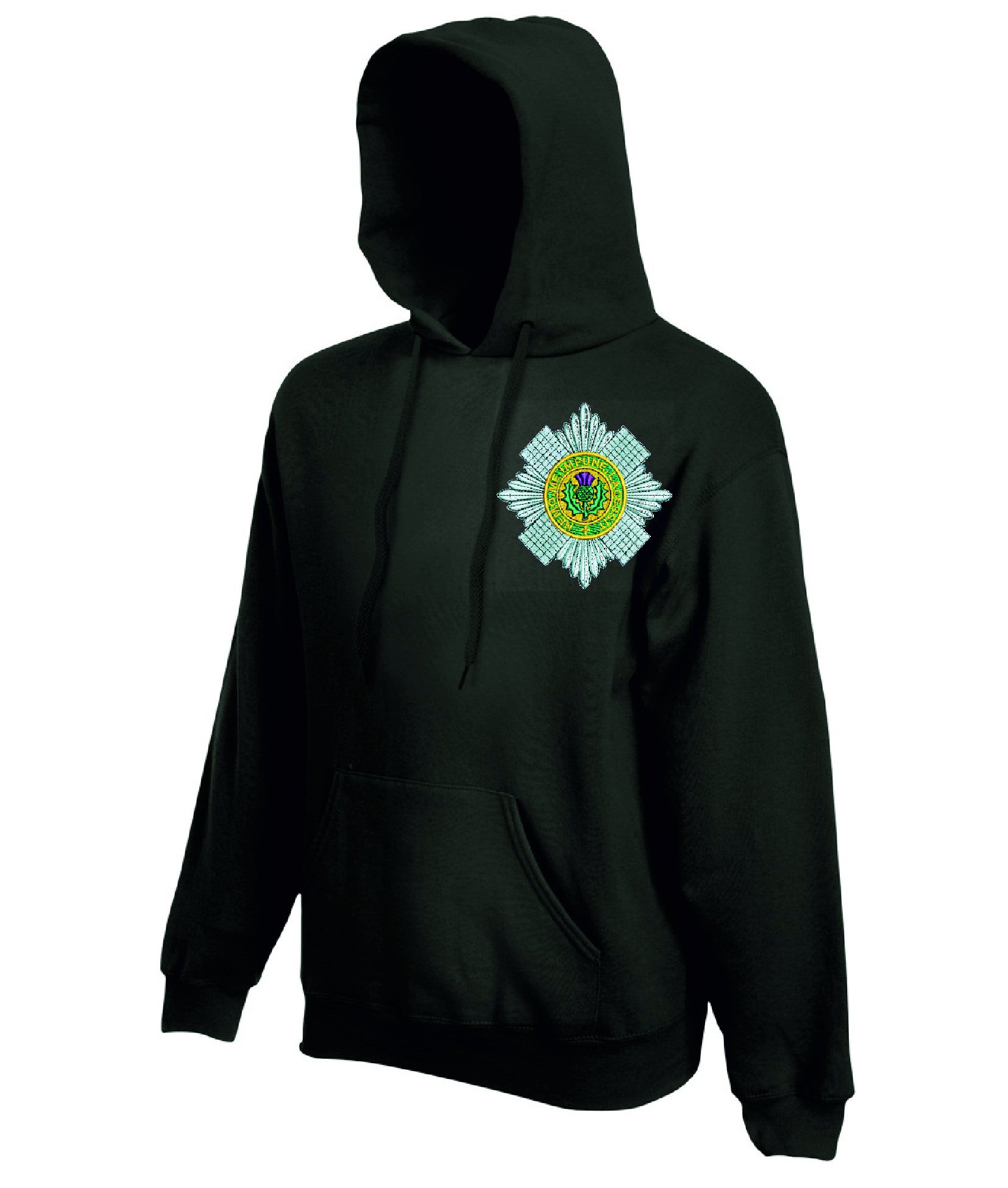 Scots Guards hoodie is made by Fruit of the Loom. The logo is then embroidered onto the t-shirt after you have selected the Size, Colour and Qty. Please allow up to three working days for your order to be processed as the item has to be embroidered first. Large orders of 15 or more may take longer.