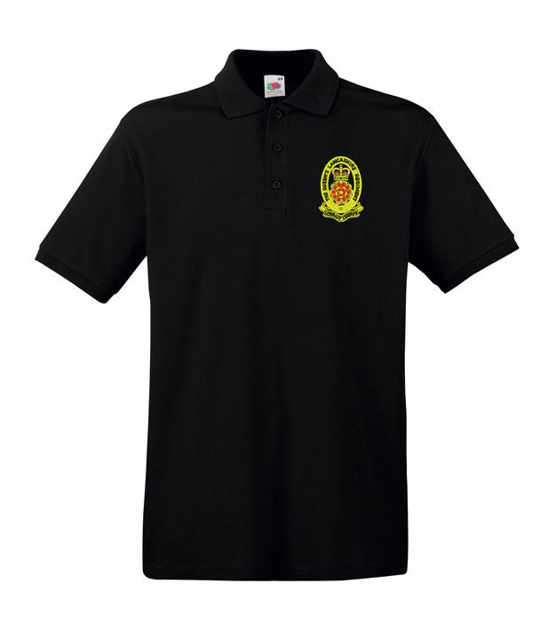 The Queens Lancashire Regiment Men's Premium Polo Shirts is made by Fruit of the Loom. The logo is then embroidered onto the polo shirts after you have selected the Size, Colour and Qty. Please allow up to three working days for your order to be processed as the item has to be embroidered first. Large orders of 15 or more may take longer.