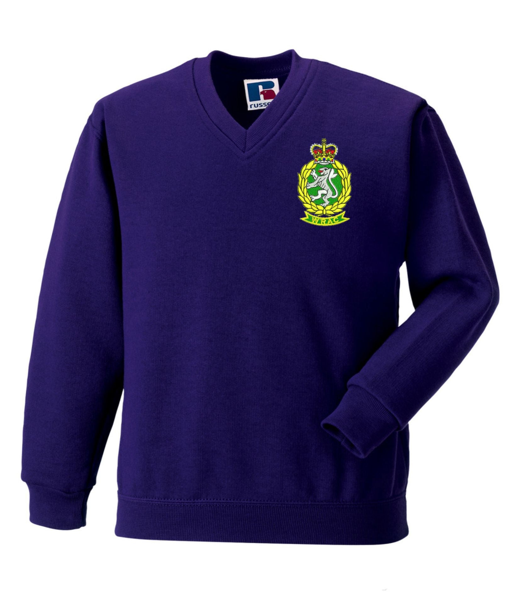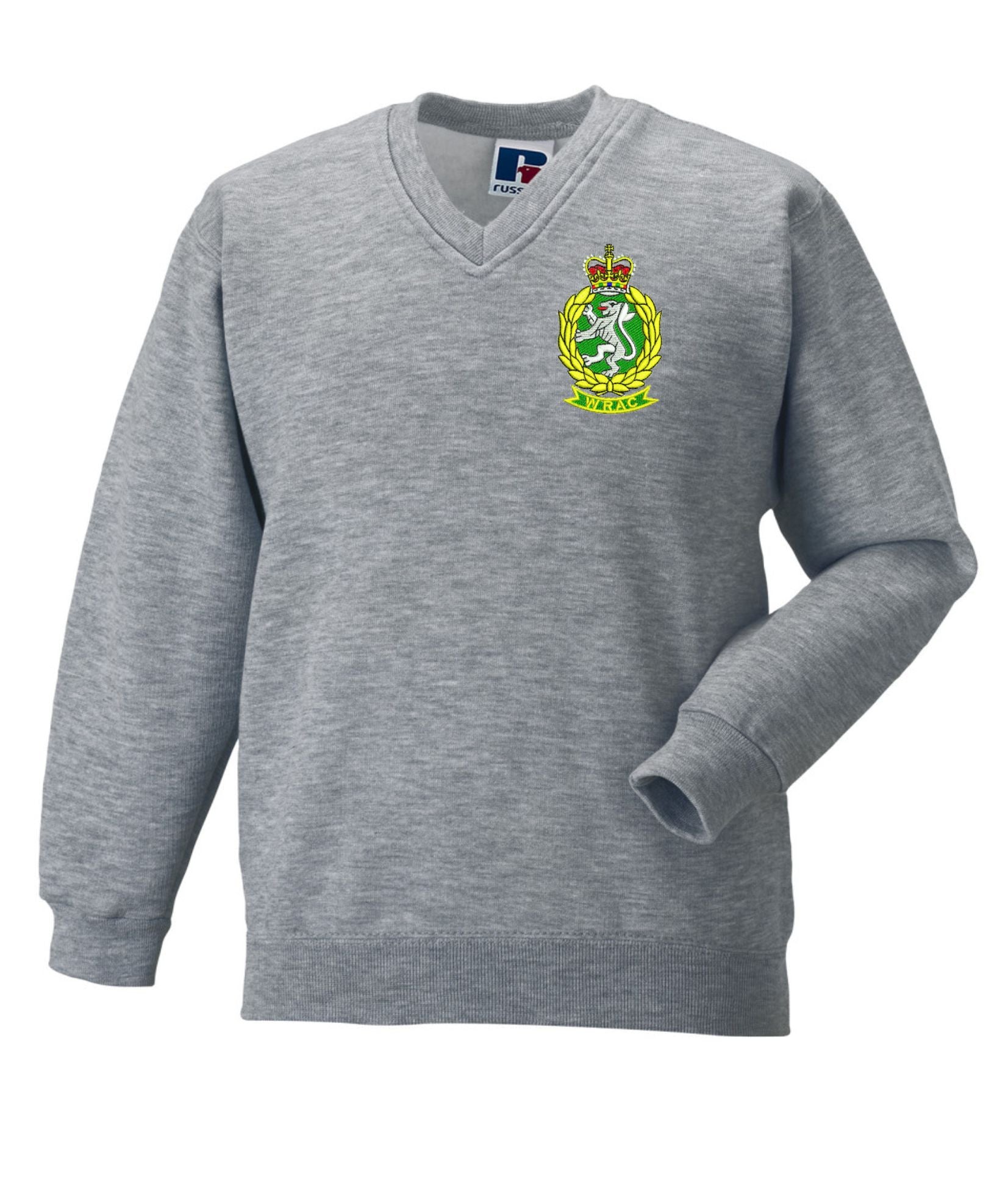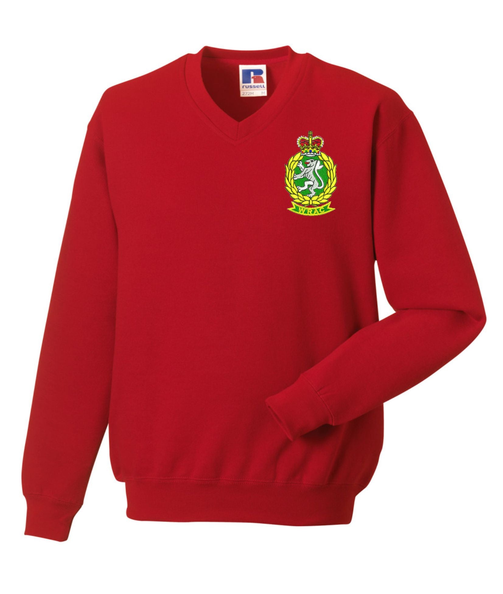 WRAC V Neck is made by russell. The logo is then embroidered onto the Regimental Embroidered Clothing after you have selected the Size, Colour and Qty. Please allow up to three working days for your order to be processed as the item has to be embroidered first. Large orders of 15 or more may take longe