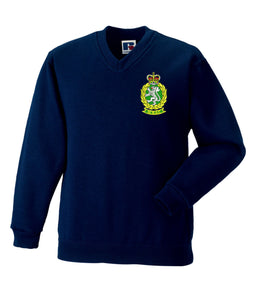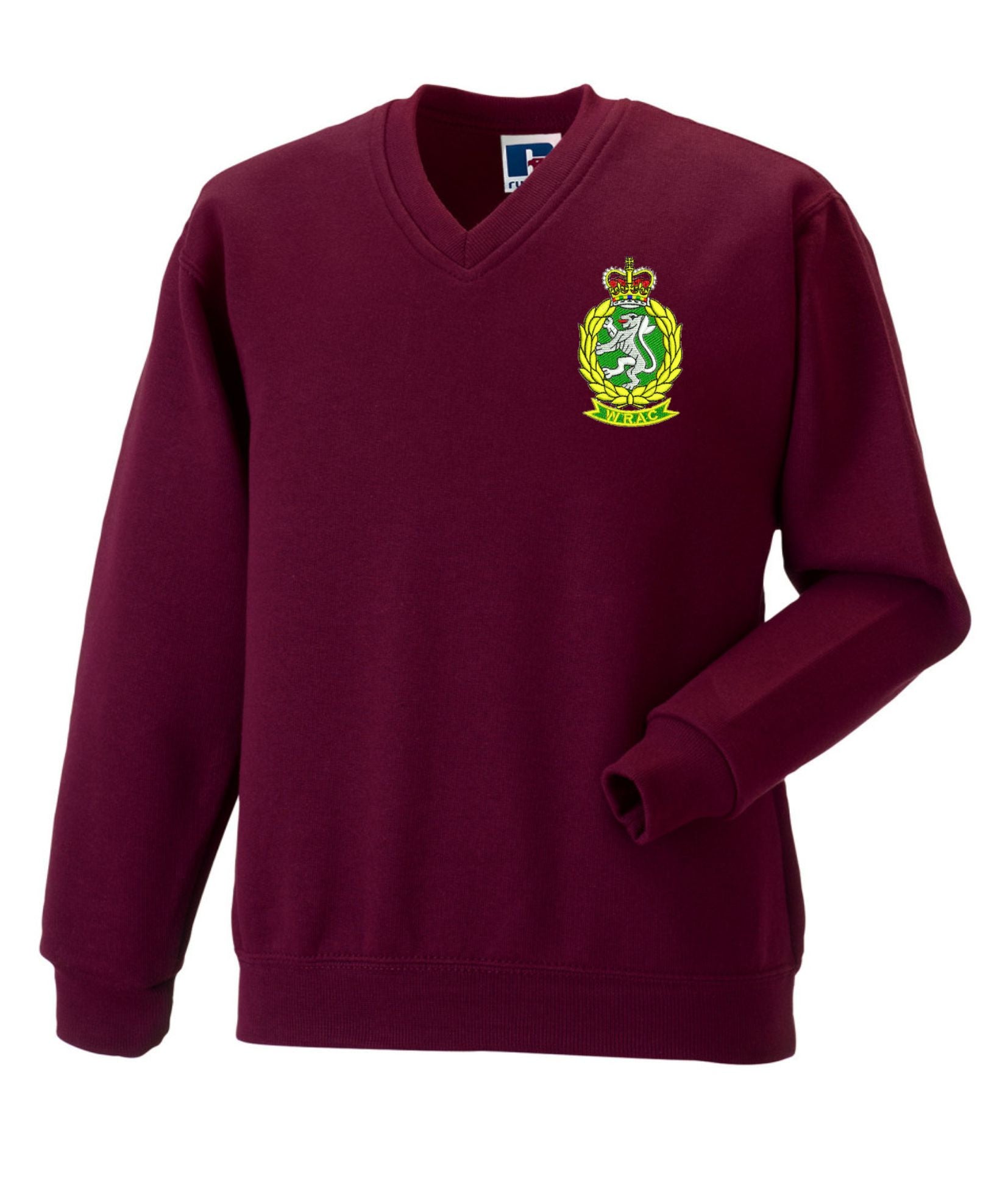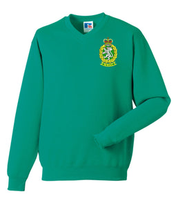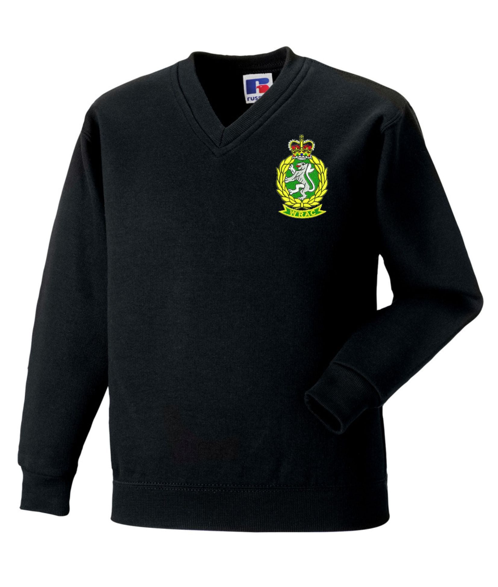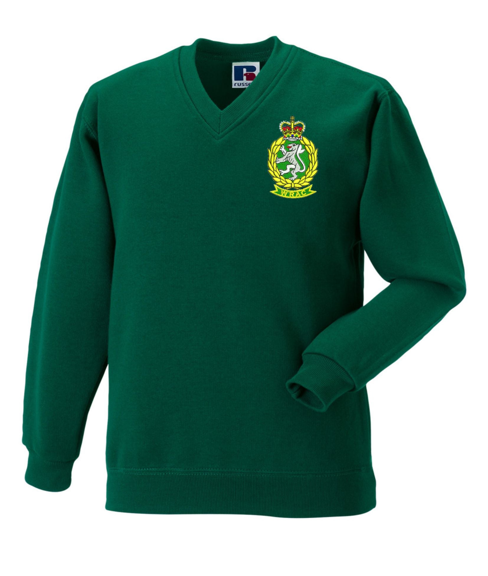WRAC V Neck is made by russell. The logo is then embroidered onto the Regimental Embroidered Clothing after you have selected the Size, Colour and Qty. Please allow up to three working days for your order to be processed as the item has to be embroidered first. Large orders of 15 or more may take longe